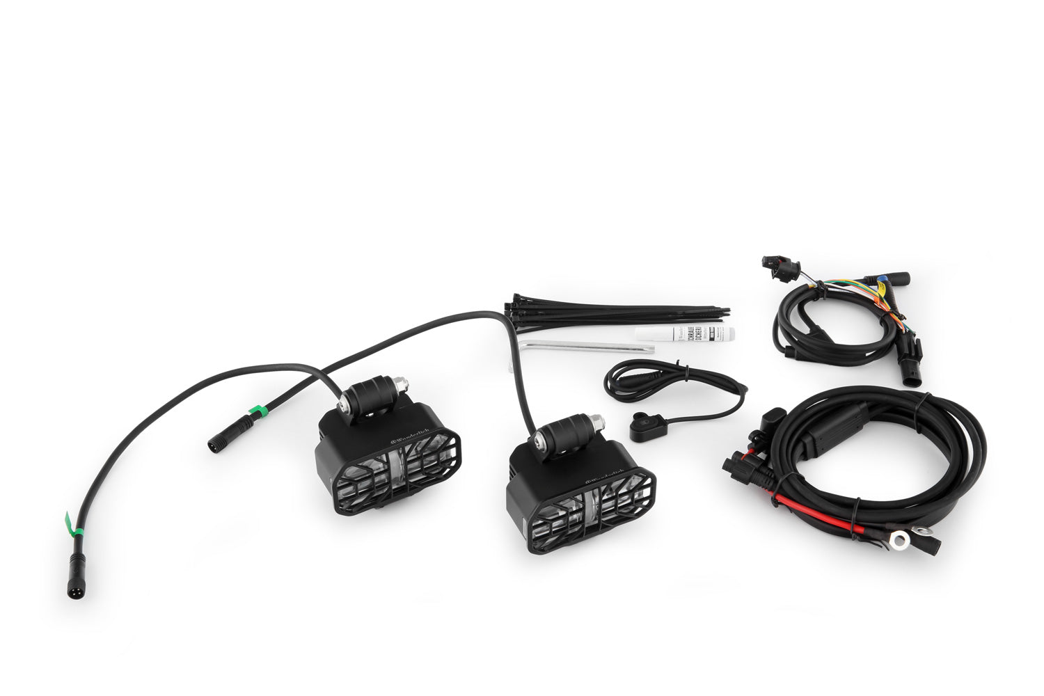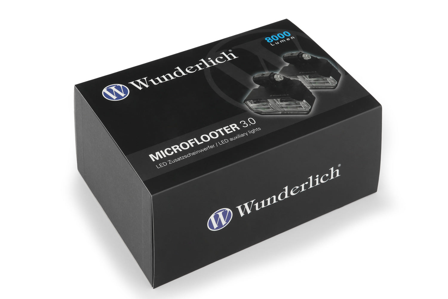 Our new MICROFLOOTER Generation 3.0: With a full 2 × 4,000 – that’s 8,000 lumens in total – they deliver four times the luminous flux of conventional auxiliary headlights. In addition to their compact design, the MICROFLOOTER LED auxiliary lights are characterised by their extreme brightness and durability with low power consumption. Thanks to the two individual LEDs per headlight and the E-approved Wunderlich lenses branded with our logo, you benefit from a distinctive light design that is recognisable from afar. Moreover, the two LEDs provide redundancy: if one should fail, the other remains available. We also supply the auxiliary and fog lights as standard with foldable, effective protective grilles – safety first! Operation is conveniently controlled from the handlebar via an illuminated switch. The light colour matches that of the main headlight. Installation is Plug & Play.