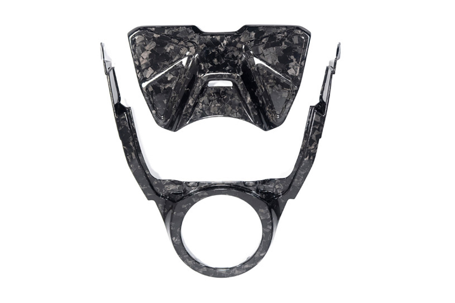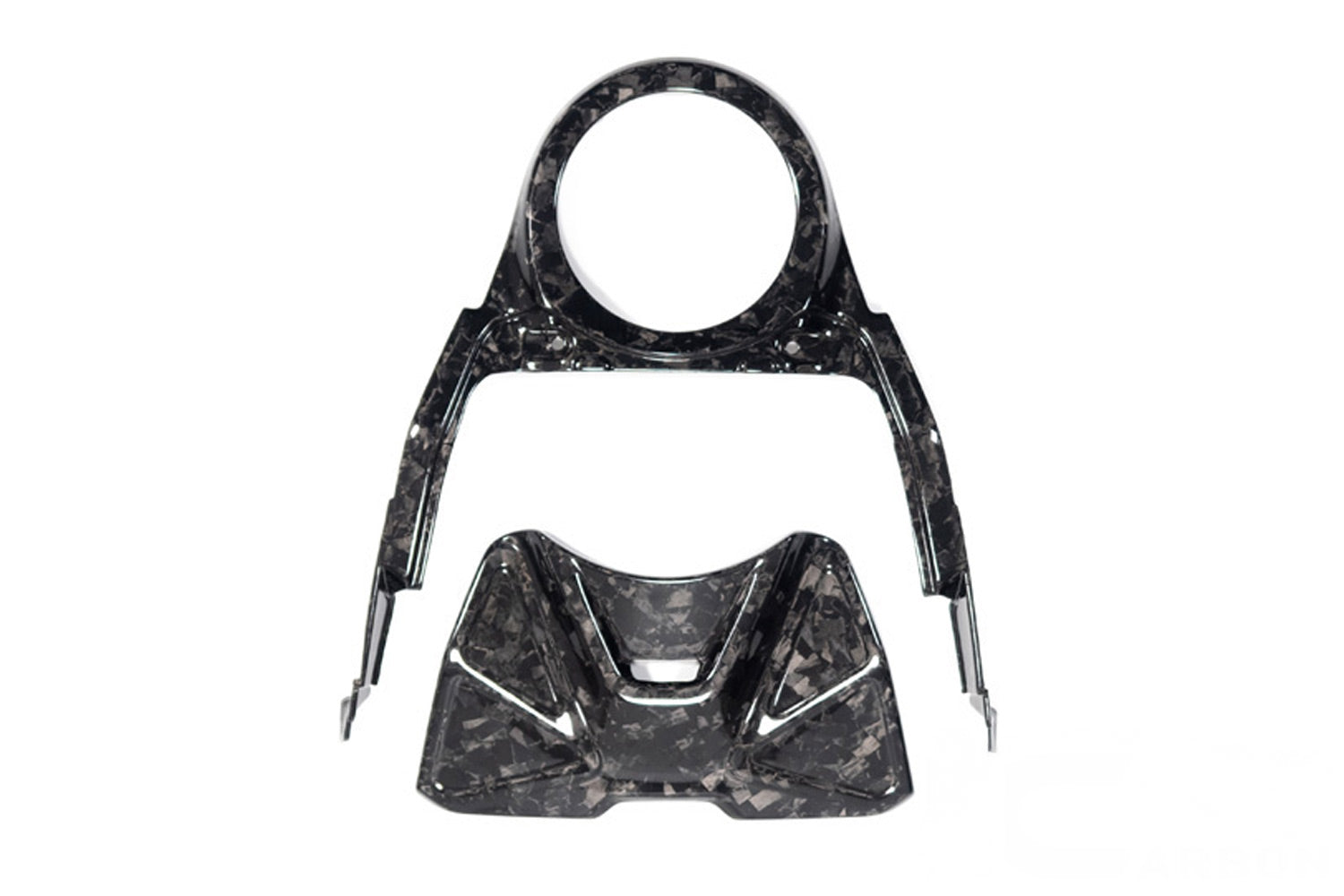 The two-part kit not only provides a stunning look but also offers effective protection for the tank. The highlight of this carbon part is its placement in the rider's line of sight - a visual delight on every journey. The innovative BDC material gives the component a completely new and unique touch. The BDC surface is one of a kind, resembling marble. It is laminated by hand at Ilmberger and cured in multiple stages in an autoclave. The material impresses not only with its intriguing appearance but also with its technical properties. The diverse fibres scatter incoming light and create unprecedented reflections.