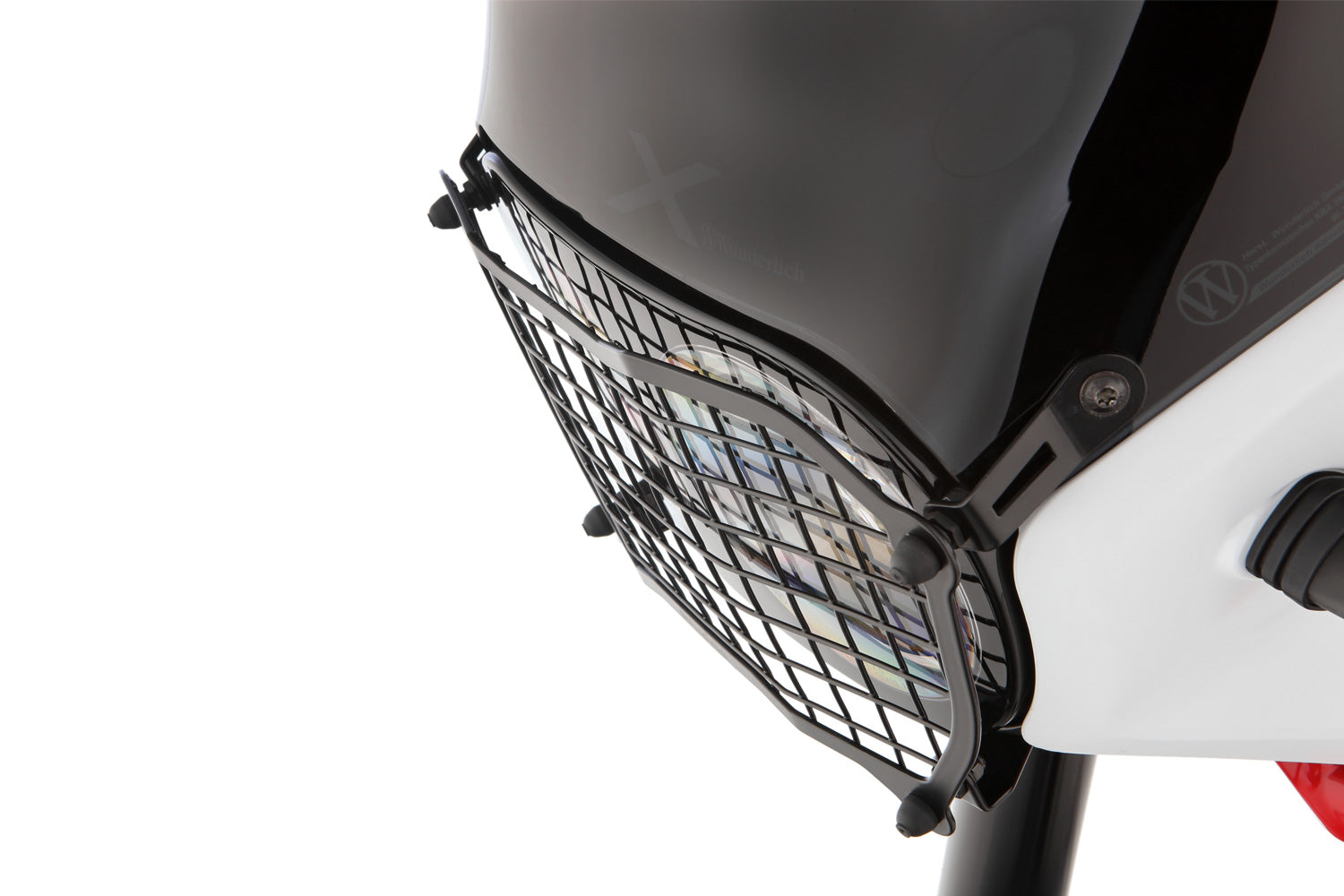 - The high-quality headlight guard consists of a frame that follows the contour of the characteristic dual headlight, with the grid integrated into the frame