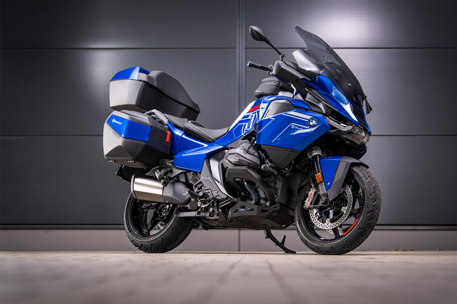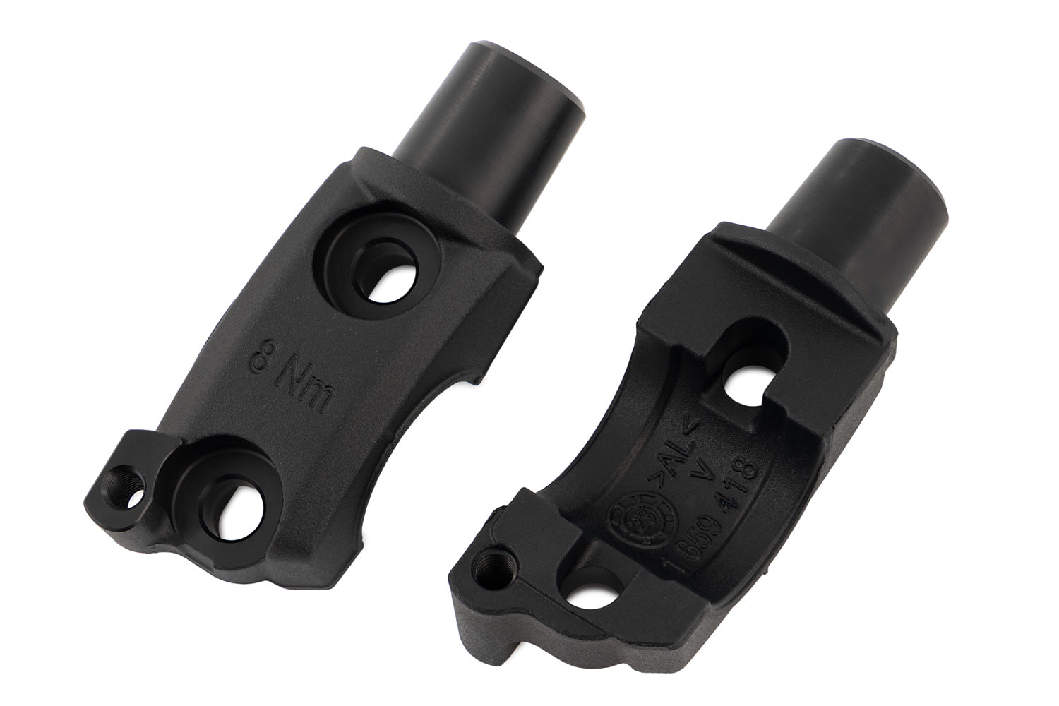 The additional mirror mount allows for the installation of two extra mirrors to complement the original rear-view mirrors, which are positioned low in the fairing. Ergonomically, placing mirrors at natural eye level is optimal because it enables easy and intuitive observation of traffic behind without having to deliberately lower your gaze. These mounts make it possible to position the mirrors in a way that noticeably improves the rearward field of vision, thereby enhancing active riding safety. Both sets of mirrors complement each other perfectly to provide outstanding awareness of everything happening behind the motorcycle. The mounts allow the original controls – which are not equipped with mirror holders as standard – to be modified so that additional rear-view mirrors can be mounted in conjunction with the SOS button and auxiliary light switch.