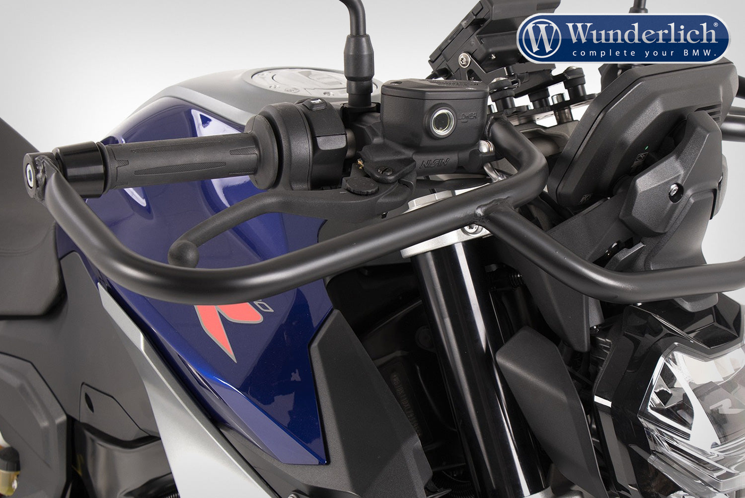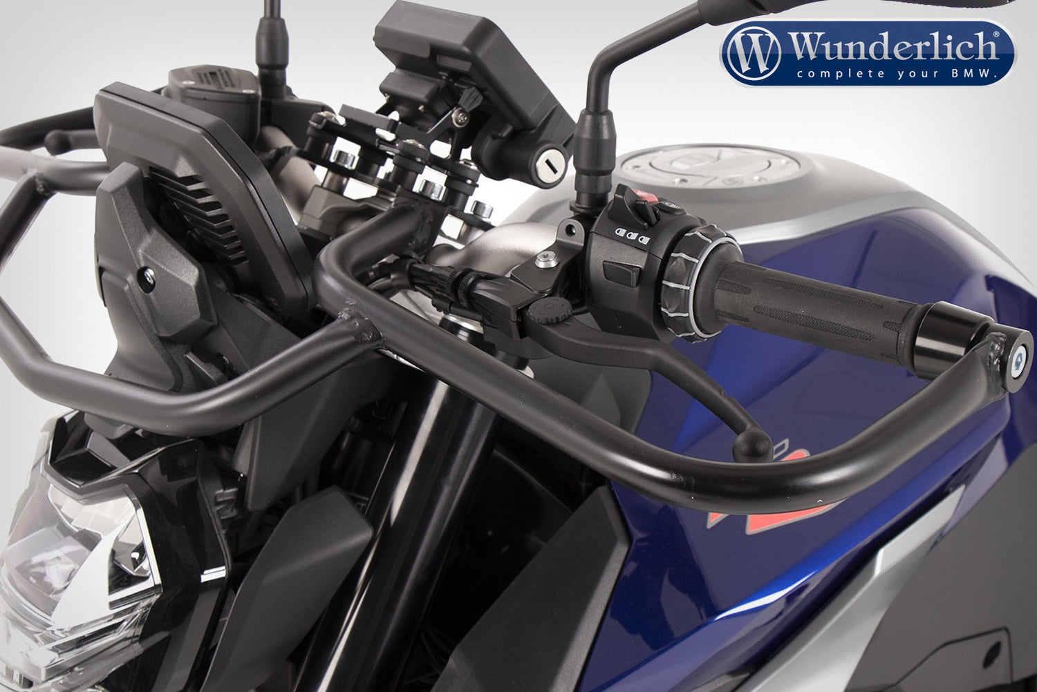 Excellent protection for handlebar, fittings and instruments in the event of mishaps and crashes at low speed. Owing to the generous dimensions of the protection bar, the indicators, clutch and brake levers as well as the exhaust muffler, fairings, etc. are protected effectively. The protection bar is powder-coated to a high quality. Includes attachments.