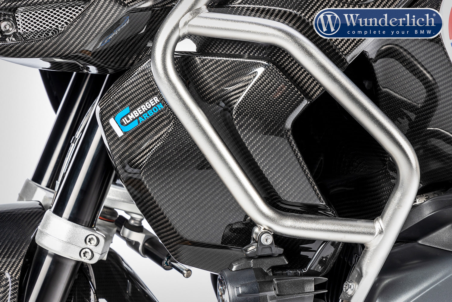 The air outlet cladding made of perfectly crafted carbon for the BMW R 1250 GS replaces the original component while using the original attachment points.