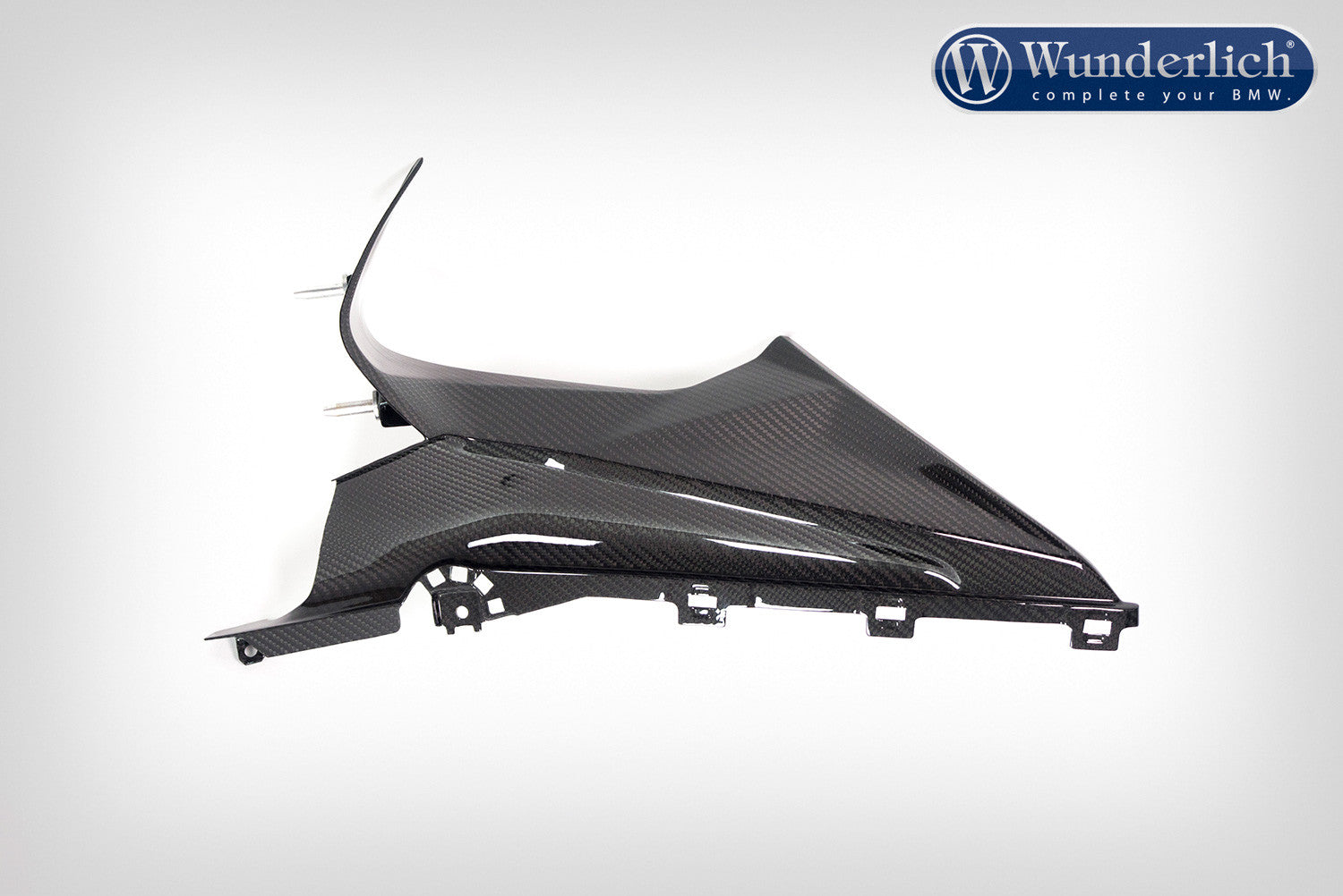 This space age material unfolds its full potential with up to 70% weight decrease compared to the standard part and its weight-specific stiffness. Form follows function here and integrates optimally into the design of the motorcycle. The contours of the machine are incorporated as well as the material and surface texture of neighbouring series components. This carbon component underscores the high-tech claim of your BMW with the unique appeal of real carbon.