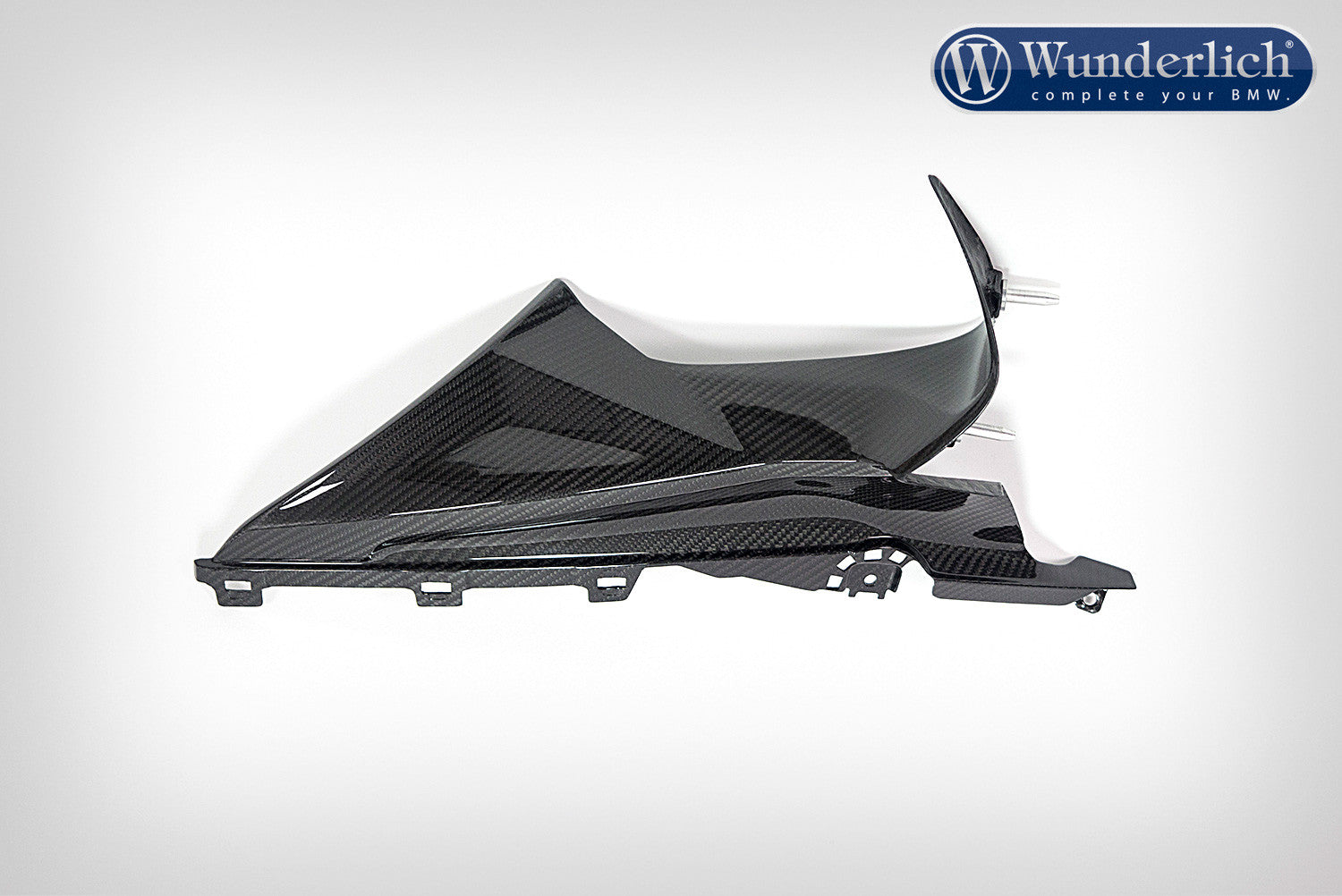 This space age material unfolds its full potential with up to 70% weight decrease compared to the standard part and its weight-specific stiffness. Form follows function here and integrates optimally into the design of the motorcycle. The contours of the machine are incorporated as well as the material and surface texture of neighbouring series components. This carbon component underscores the high-tech claim of your BMW with the unique appeal of real carbon.