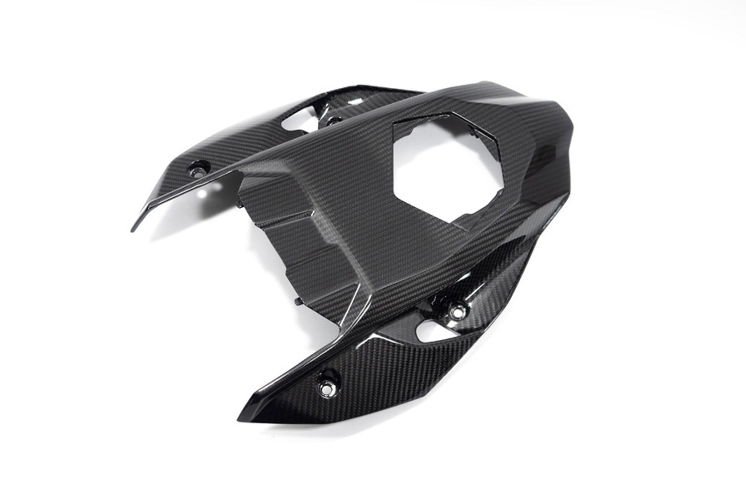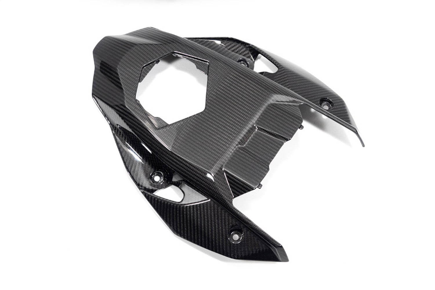 This space age material unfolds its full potential with up to 70% weight decrease compared to the standard part and its weight-specific stiffness. Form follows function here and integrates optimally into the design of the motorcycle. The contours of the machine are incorporated as well as the material and surface texture of neighbouring series components. This carbon component underscores the high-tech claim of your BMW with the unique appeal of real carbon.