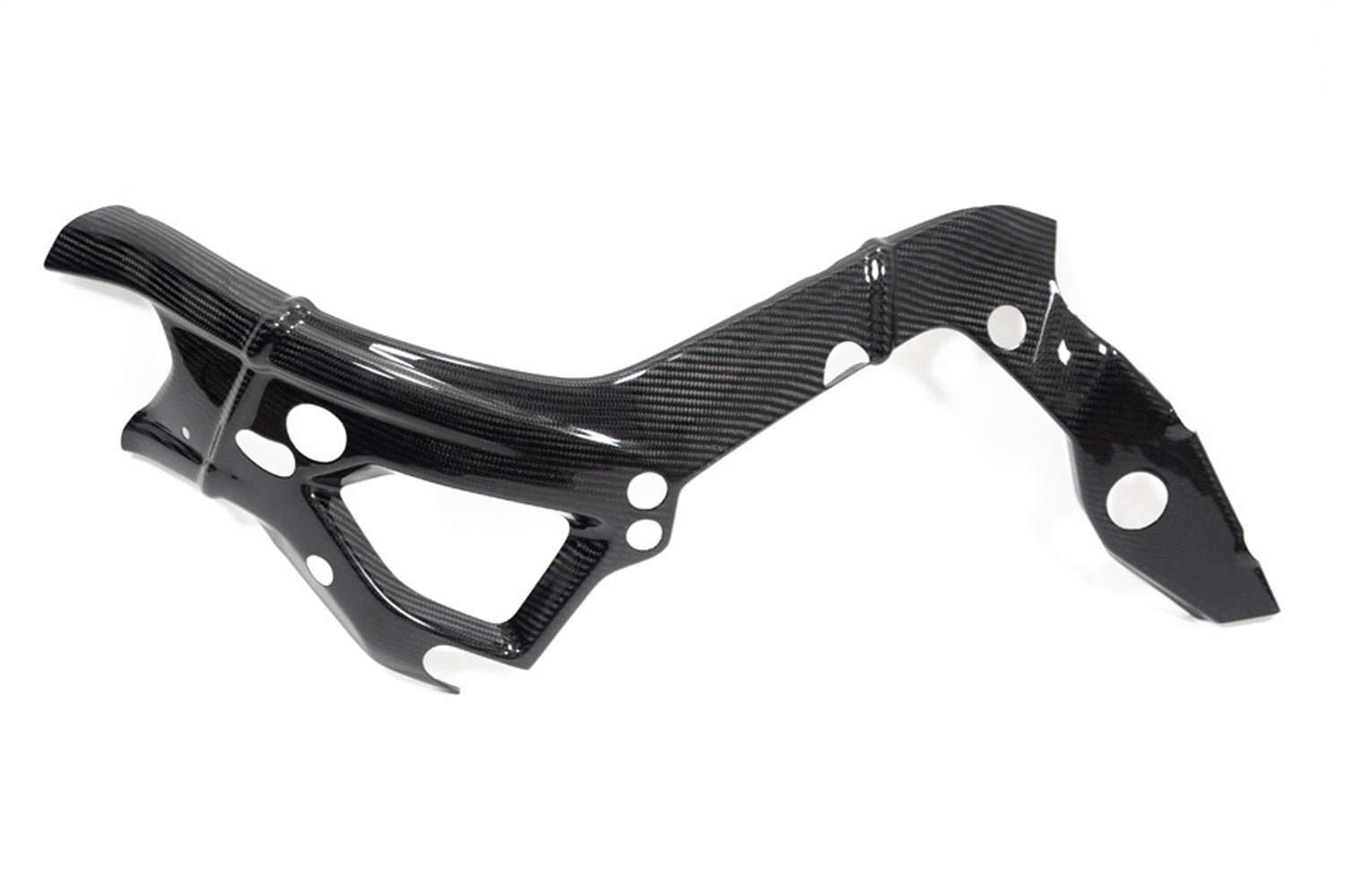 This space age material unfolds its full potential with up to 70% weight decrease compared to the standard part and its weight-specific stiffness. Form follows function here and integrates optimally into the design of the motorcycle. The contours of the machine are incorporated as well as the material and surface texture of neighbouring series components. This carbon component underscores the high-tech claim of your BMW with the unique appeal of real carbon.