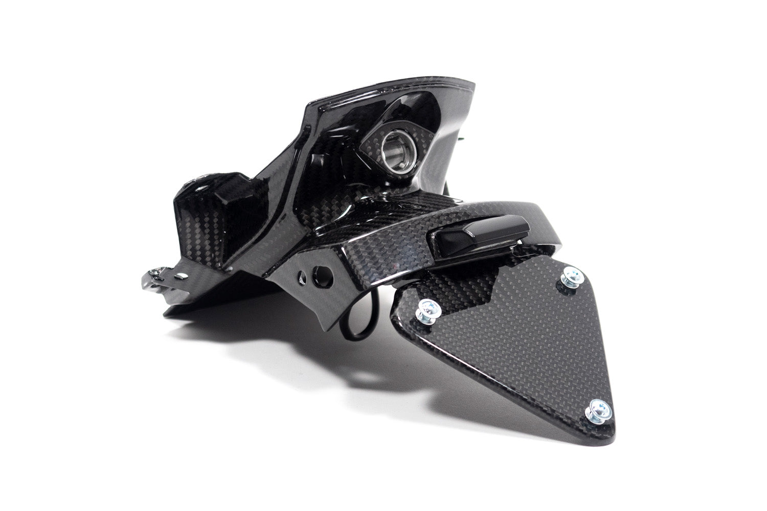 Short carbon number plate holder, consistently lightened Extremely lightweight and strong carbon fibre material which is coated with a glossy rigid plastic protective coating that penetrates into the material and guarantees optimum protection. Easily swapped with original.