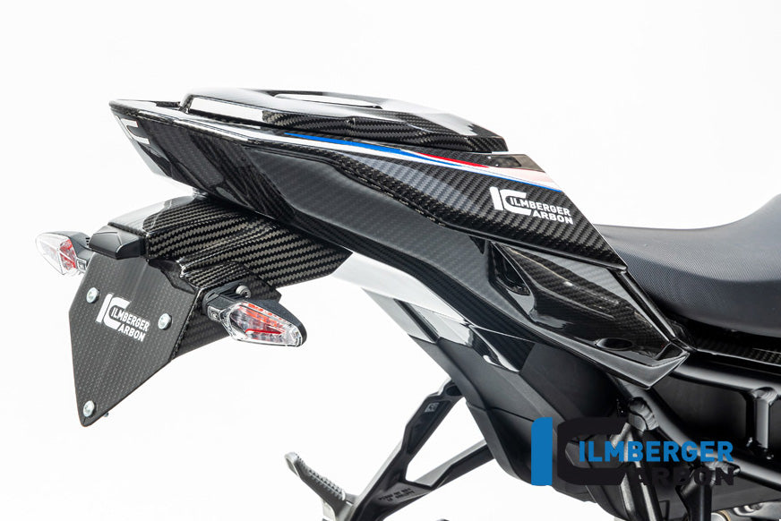This space age material unfolds its full potential with up to 70% weight decrease compared to the standard part and its weight-specific stiffness. Form follows function here and integrates optimally into the design of the motorcycle. The contours of the machine are incorporated as well as the material and surface texture of neighbouring series components. This carbon component underscores the high-tech claim of your BMW with the unique appeal of real carbon.