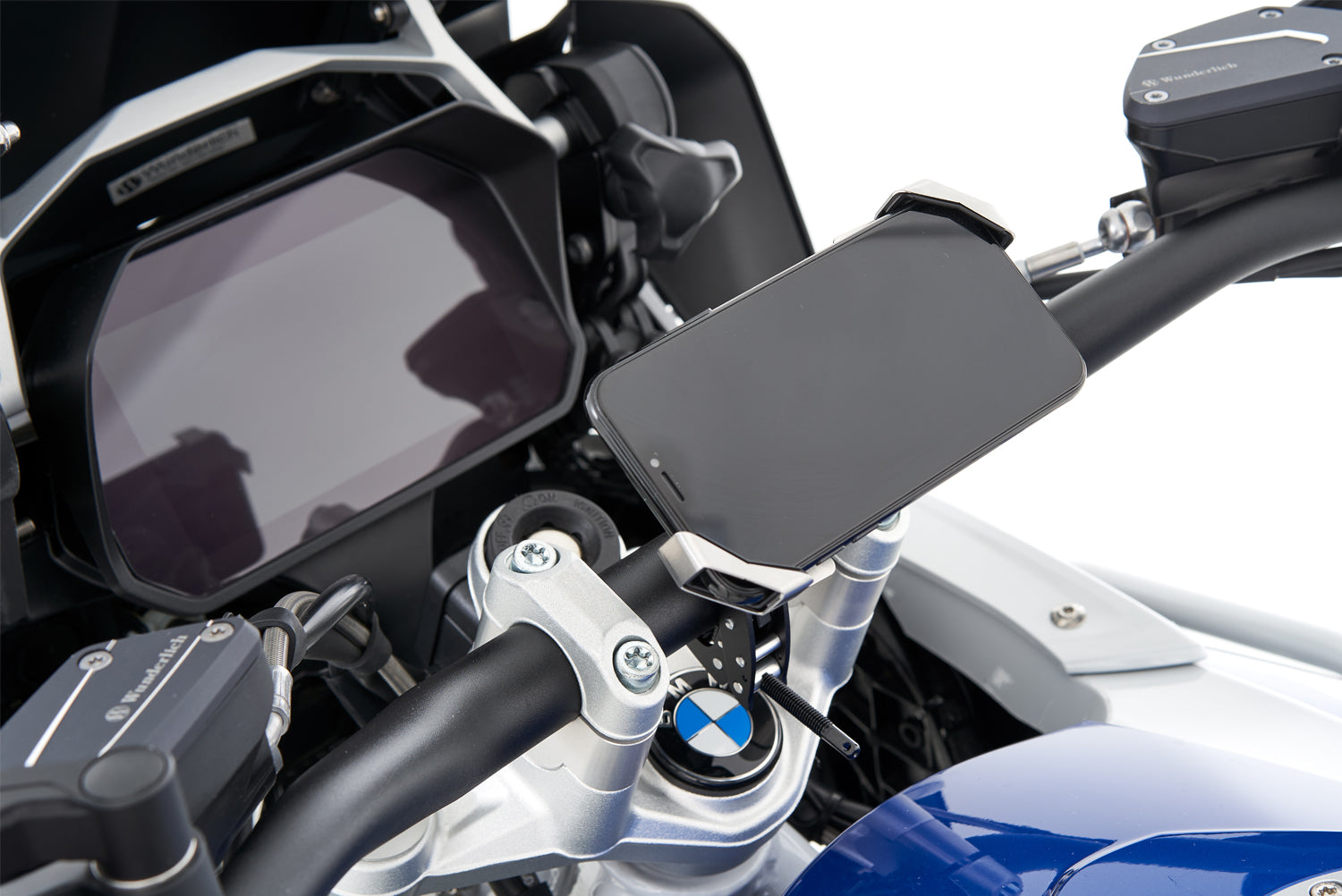 The MULTICLAMP universal clamp is highly versatile. Using the removable toggle (included in the scope of delivery) together with a spindle, you can easily and reliably attach it to the handlebar, tank protection and engine protection bars or the luggage rack. The MULTICLAMP is suitable for all pipes with a diameter of 10 to 32 mm. The special feature here is that the sophisticated clamping mechanism makes it suitable for round and square pipes, but also for flat profiles up to 32 mm such as you would find on many luggage racks. Once attached, you can remove the toggle to avoid theft.