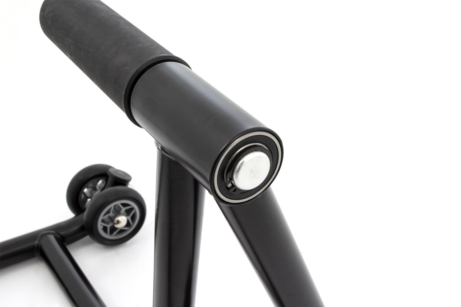 Professional, comfortable and well thought-out jack-up device for BMWs without stands and the ideal aid when the machine needs to stand absolutely securely for maintenance work, etc.