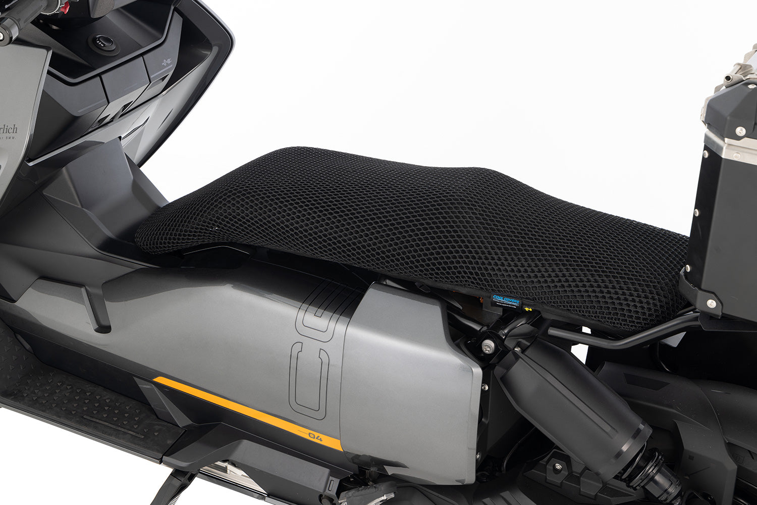 This seat cover is the climate control for your original BMW bike seat. The air can circulate while riding because the cover is constructed in three dimensions and is eight millimetres thick. It doesn't completely compromise even with a lot of weight: Not only is the air permeability assured, but the seat even stays dry in the rain. The Cool Cover also doesn't heat up in sunlight. An additional benefit: It creates an effect resembling a massage and thus reduces the symptoms of tiredness.