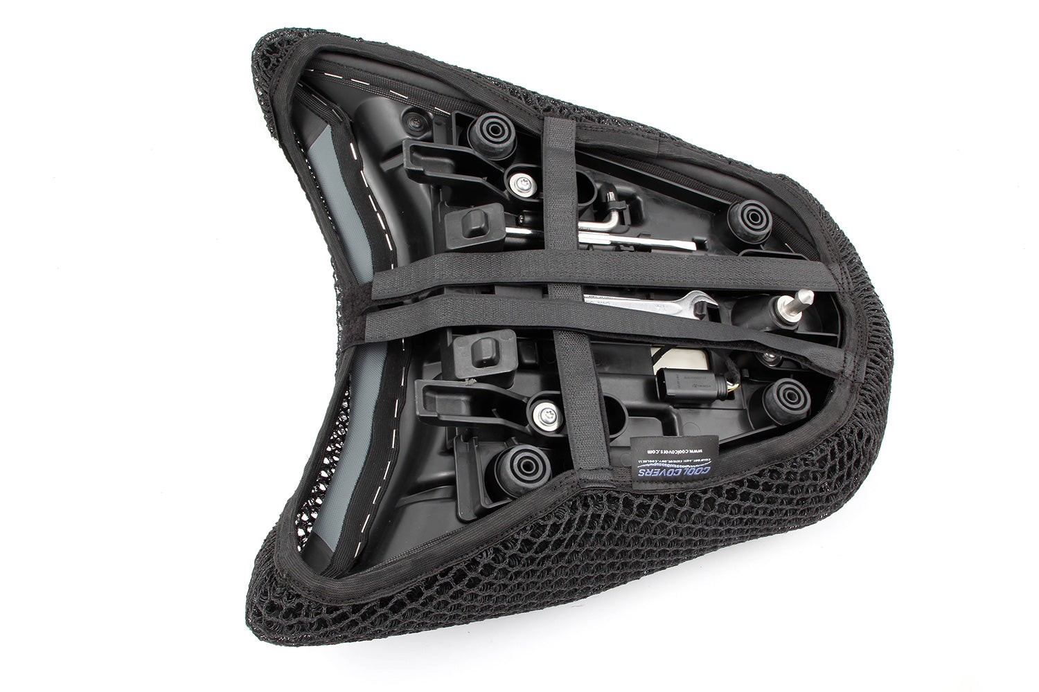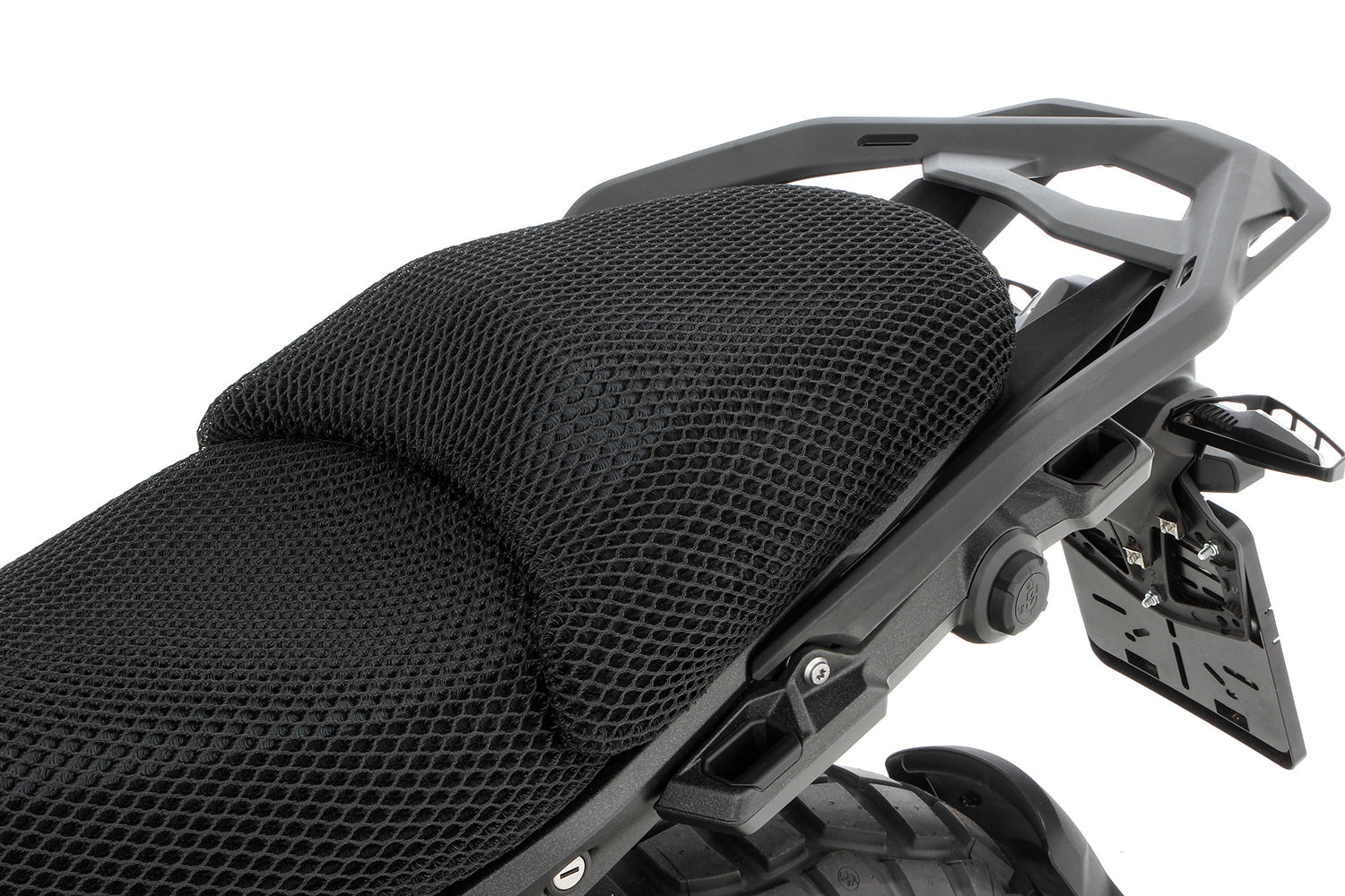 This seat cover is the climate control for your original BMW bike seat. The air can circulate while riding because the cover is constructed in three dimensions and is eight millimetres thick. It doesn't completely compromise even with a lot of weight: Not only is the air permeability assured, but the seat even stays dry in the rain. The Cool Cover also doesn't heat up in sunlight. An additional benefit: It creates an effect resembling a massage and thus reduces the symptoms of tiredness.