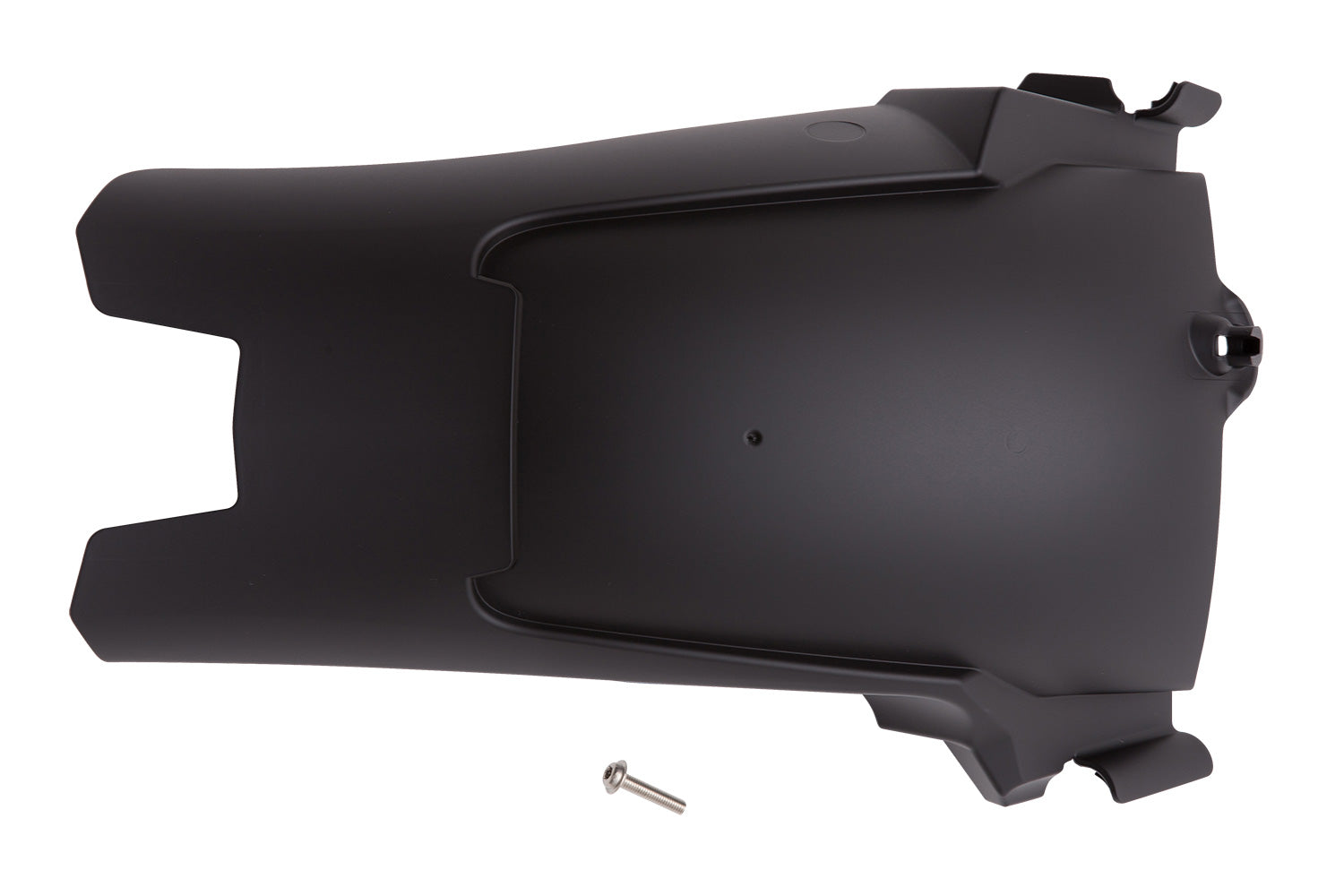 This inner mudguard protects the shock absorber, shock absorber mount, swingarm, gearbox, and collector. It captures and reliably directs the splashed water and foreign objects. This sensible component reduces and simultaneously protects riders and passengers sustainably from spray and road dirt in the area of the feet and shins.
