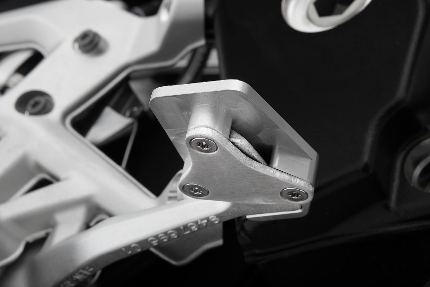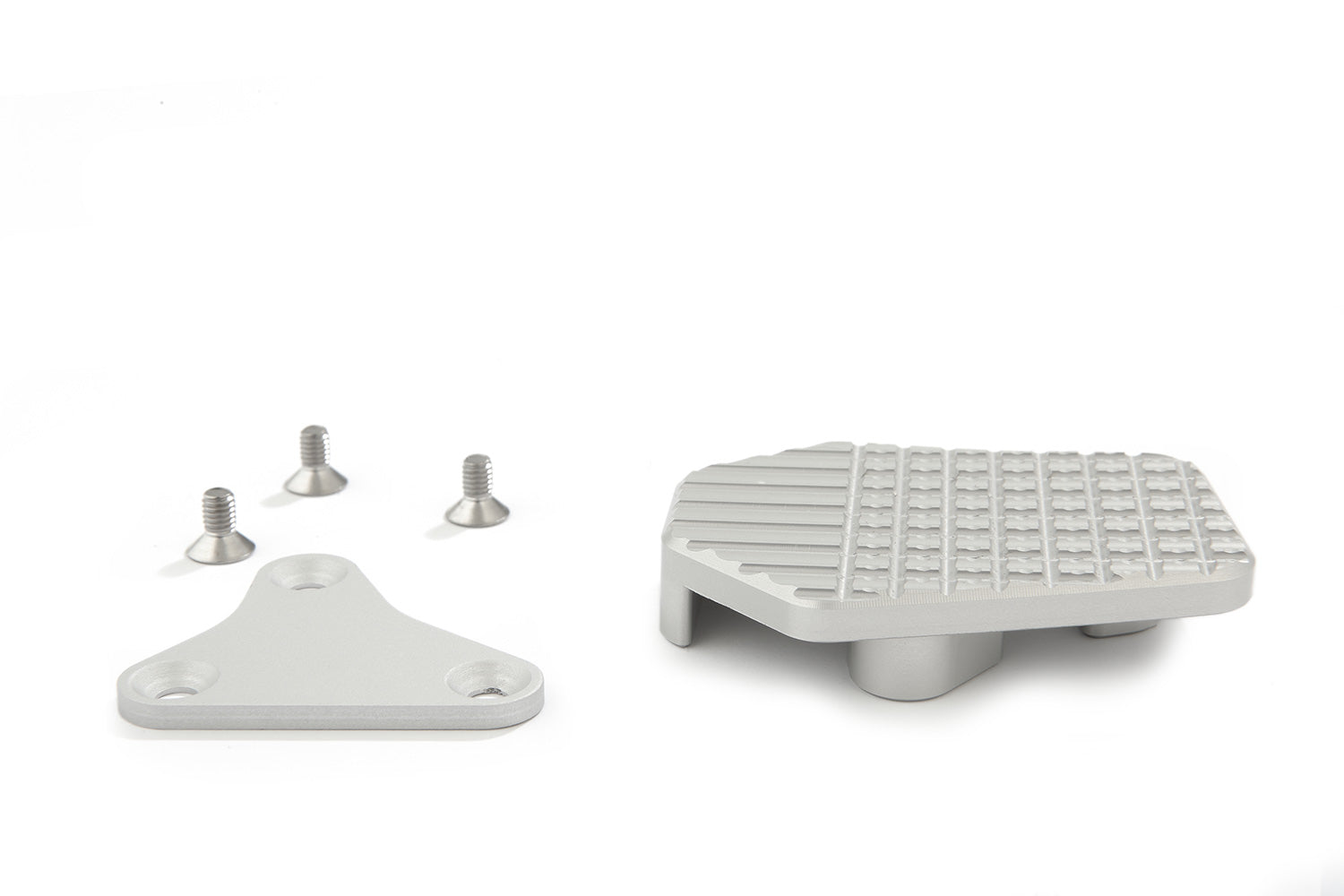 In its original form the footrest area of the brake lever is unfortunately rather small, which all too often presents a safety risk. This enlargement for the foot brake lever functions as an extension of the original foot brake lever. It simply screws onto the lever. Accidental slippage or failure of the lever and the associated "kicking empty air" thus becomes almost impossible. The carefully milled fluting provides protection against slippage in the wet. The enlarger improves ergonomics and comfort and thus increases passive safety.