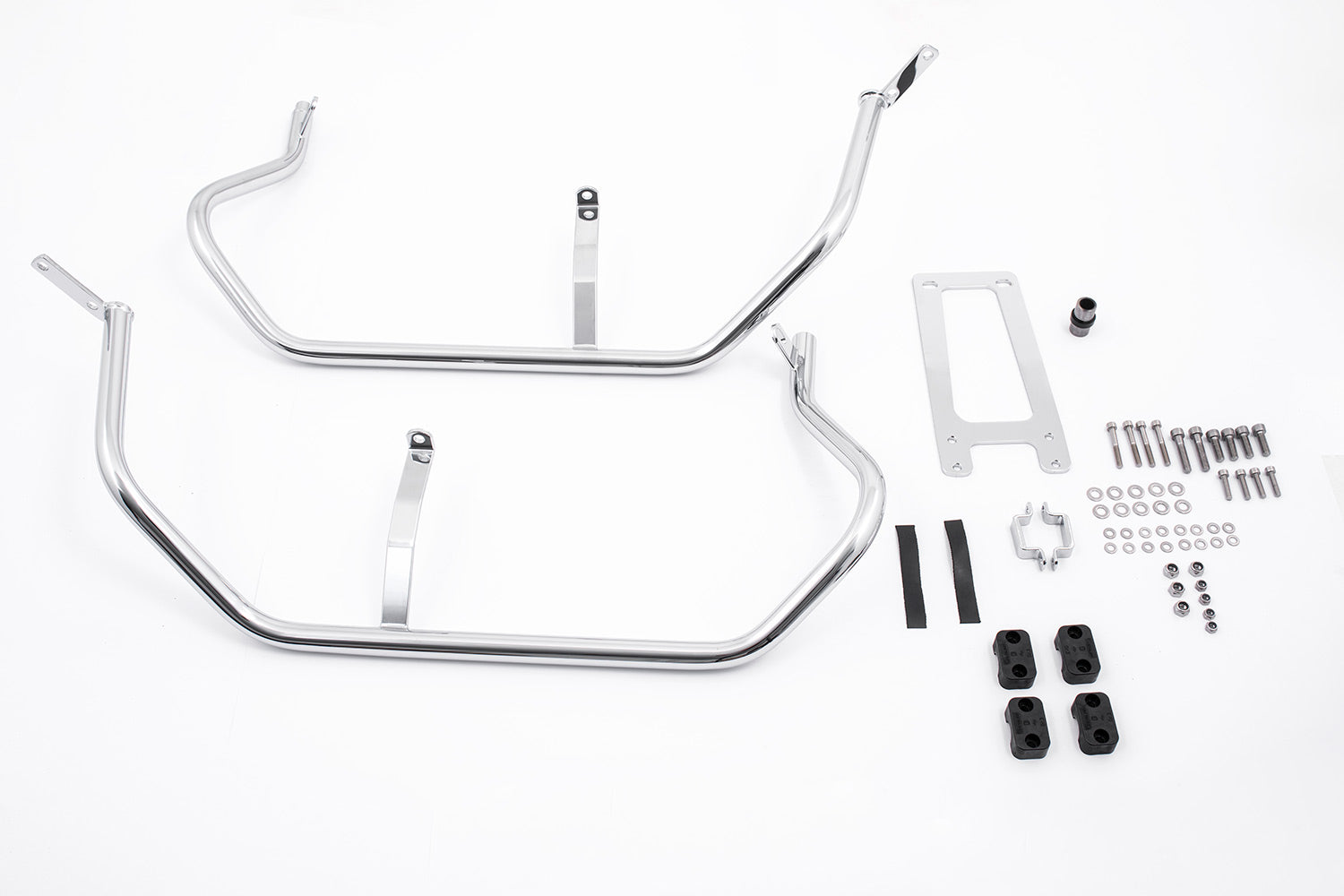 These case protection bars incorporate the unique design of the K 1600 B and are guided underneath the cases. They integrates perfectly on a visual level and extend the secure protection of the heavy K 1600 B/Grand America to the rear of the vehicle. The prominent cases get damaged very quickly in the event of a skid, but these bars reliably protect against expensive repairs.