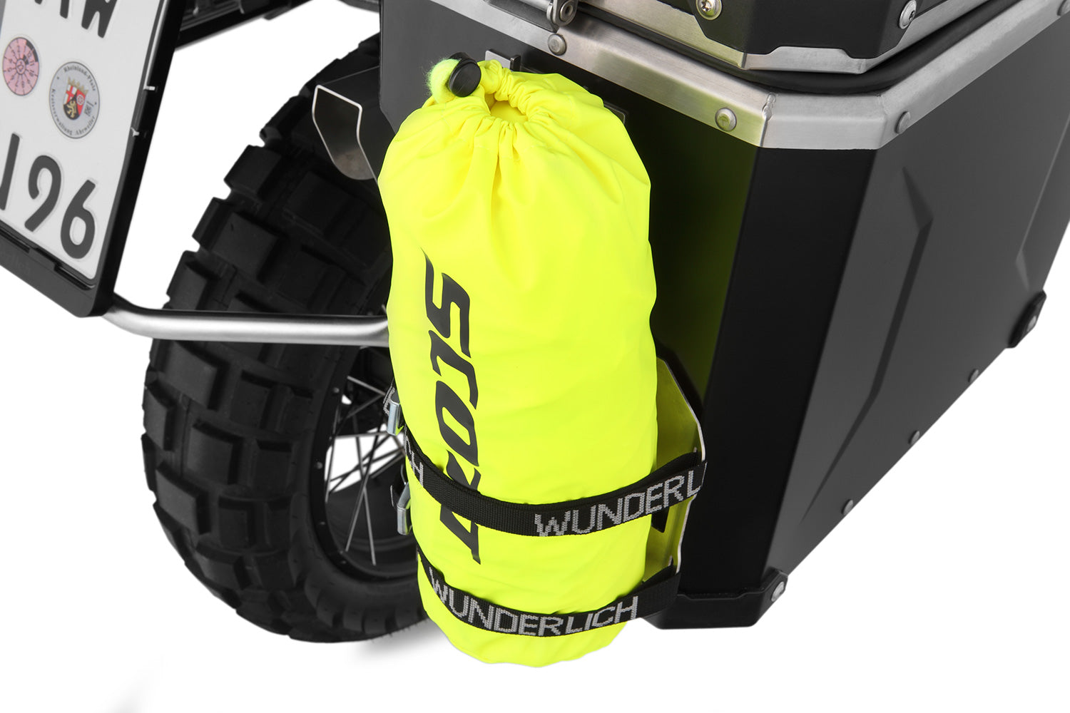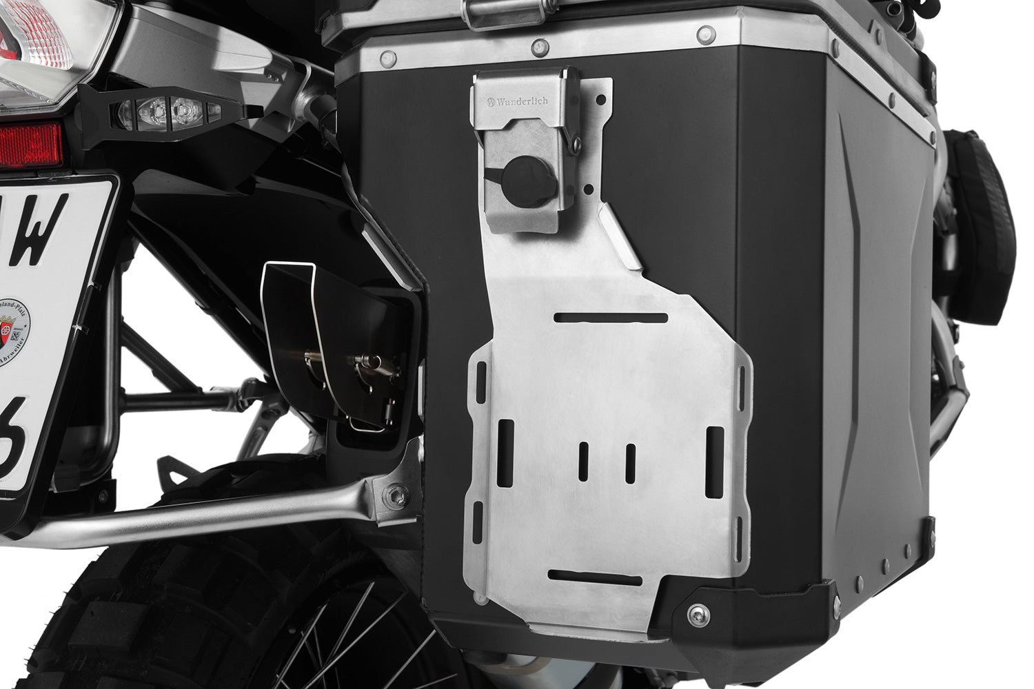 The rack fits our EXTREME cases (not the slimline variant) and the original BMW aluminium cases. It can be mounted on the right and/or left case. The secure attachment is very simple: The rack is attached permanently and theft-protected to existing points at the top of the respective case lock. At the bottom, the rack is securely fixed to the case with Velcro. It also serves as a cushion. It is therefore not necessary to drill holes in the case, which could lead to leaks.