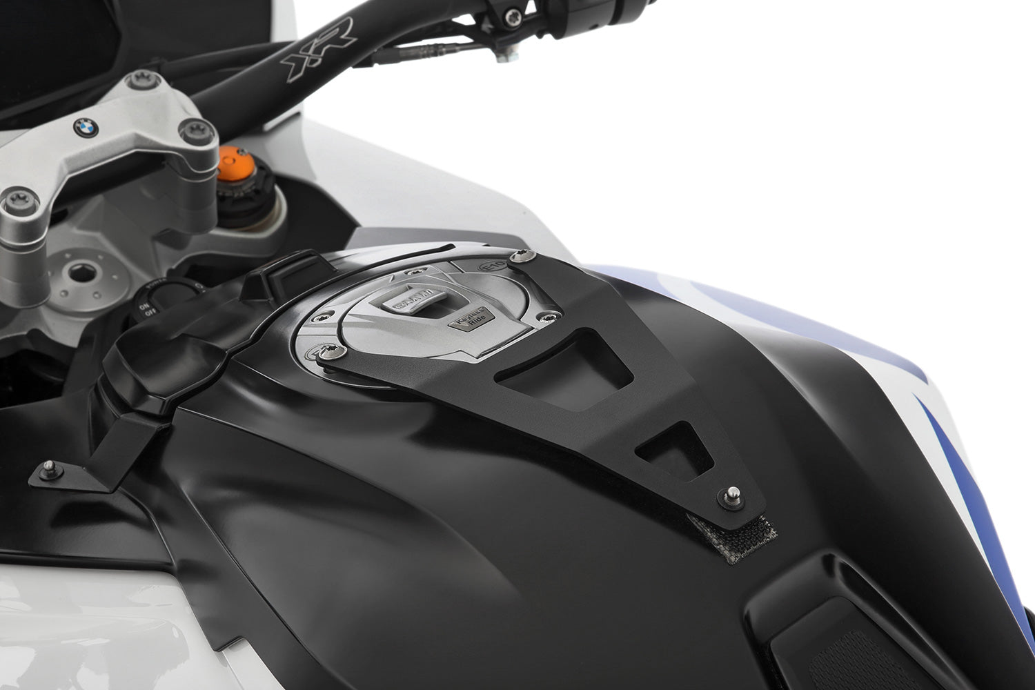 S1000 XR 2020 on | M1000 XRThis tailored, sporty tank bag is the ideal solution for everyday travel, but also for tours over a day or multiple days. The new, streamlined, functional design is recognisable by the subtle blue detailing. The practical LOXX quick releases mean the Sport tank bag can be mounted quickly and simply and released again. This means it emerges as the functional „daily driver“ among tank bags. The volume is sized so that you can comfortably store everything you normally carry with you, e.g. documents, wallet, keys, smartphone. And a little bit more! The practical E-CONNECT cable access allows e.g. easy charging of the smartphone via an on-board socket.