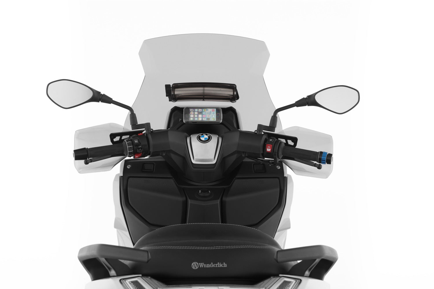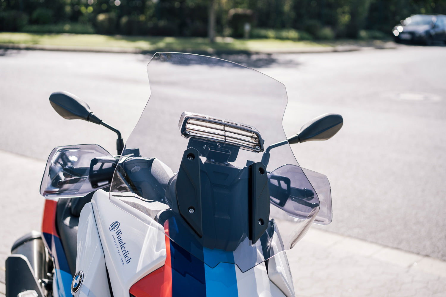 For a long time, the use of Hand guards was reserved exclusively for off-road machines. This is totally understandable, they offer lots of advantages. Cold, clammy or wet hands are unpleasant, just like stone impacts, road dirt of any kind or insects splatters at high speed. Our Hand guards for the BMW Scooter provide the remedy for this. You can't get any more protection, but you should definitely have this level of protection. We have equipped our Hand guards with a water-deflecting collar that extends outwards; it guides spray water outwards and lets it flow off the sides. Functionality aside, our Hand guards are designed to be discreet and attractive. The Hand guards are made of acrylic, are thermally stable, scratch and shatter-proof and resistant to petrol. They are quick and easy to mount. They can be used with or without grip heating as well as handlebar end weights and our cruise control.