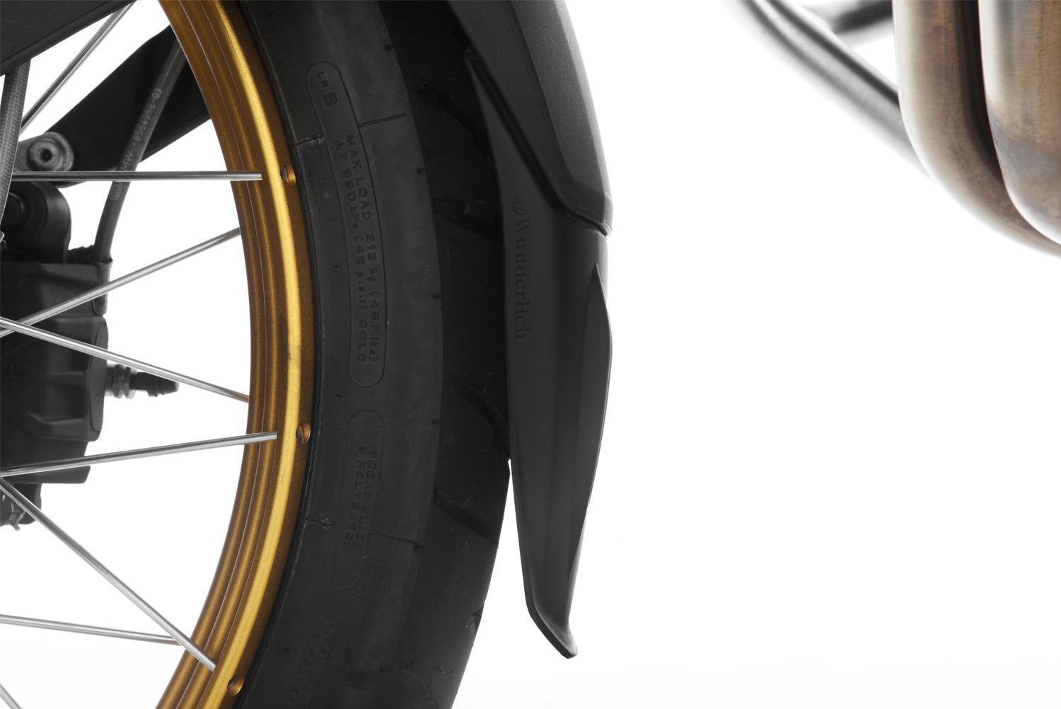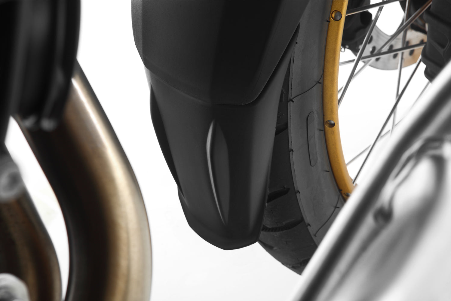 This extension of the original mudguard, made of thermoformed ABS material, puts an end to such problems. The extension is bolted to the mudguard fairly out of sight, so that the attachment bolts are not really noticed.