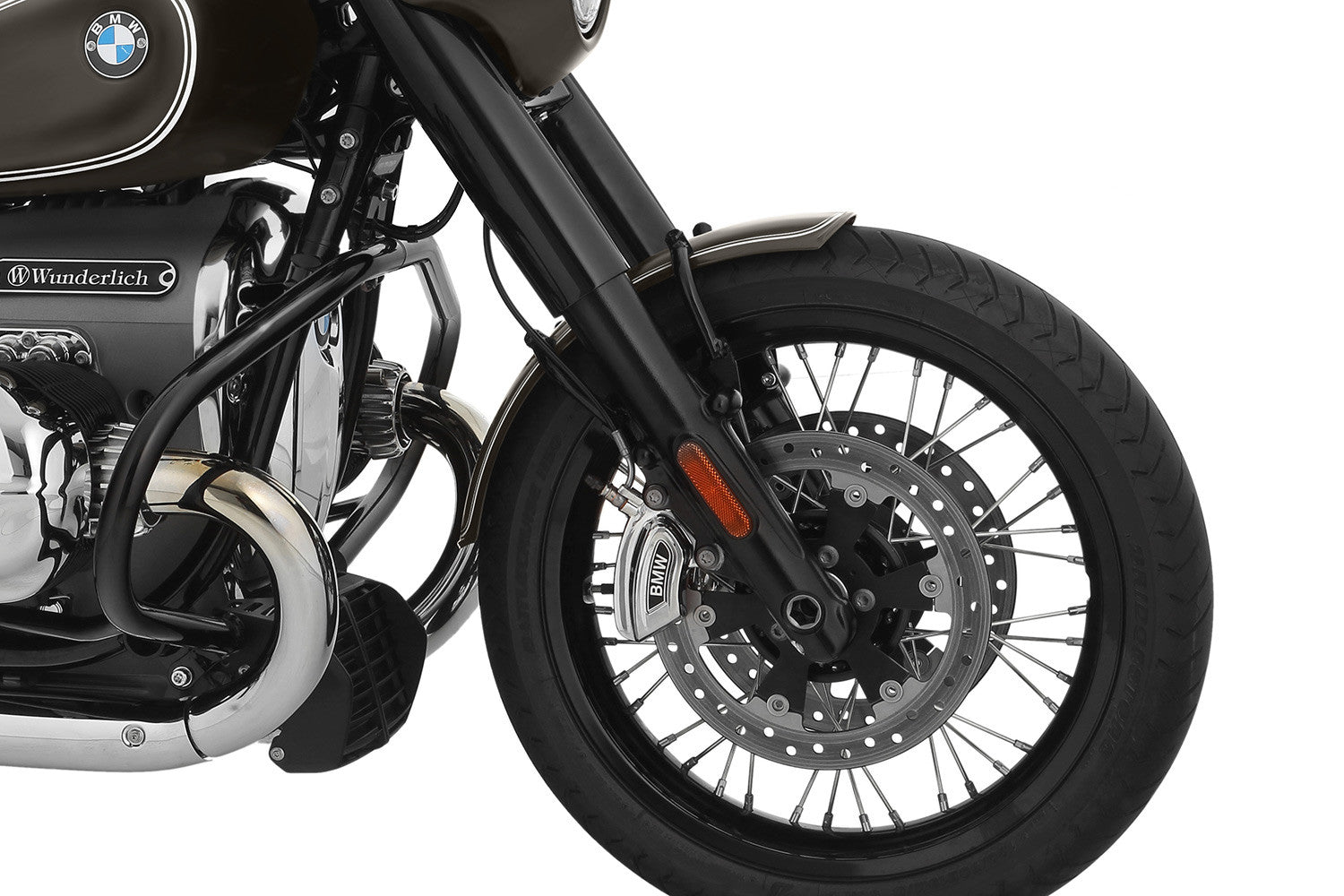The characteristic holder for the front mudguard is constructed of sturdy, high-quality, powder-coated in three layers black-glossy tubular steel with a diameter of 16 mm. It is securely bolted together with the fender to the four standard attachment points.