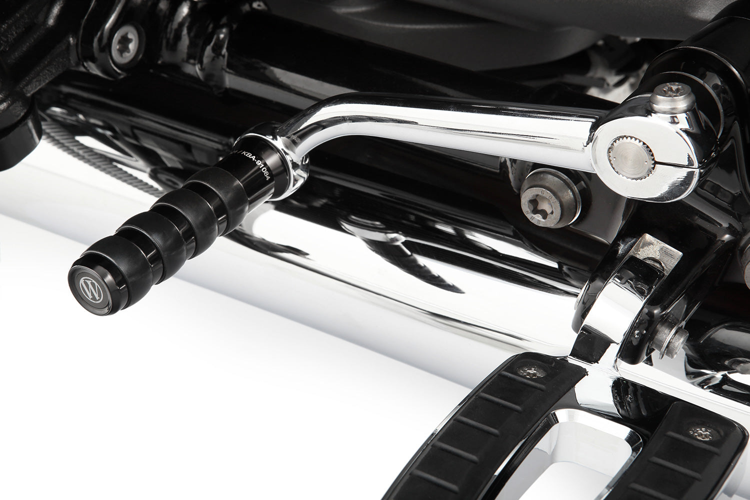 We manufacture the gear-shifter extension from high-quality aluminium. Chromed to match the R 18. The integrated rubber elements provide the best grip when shifting gears and simultaneously ease the stress on your motorcycle boots or shoes.