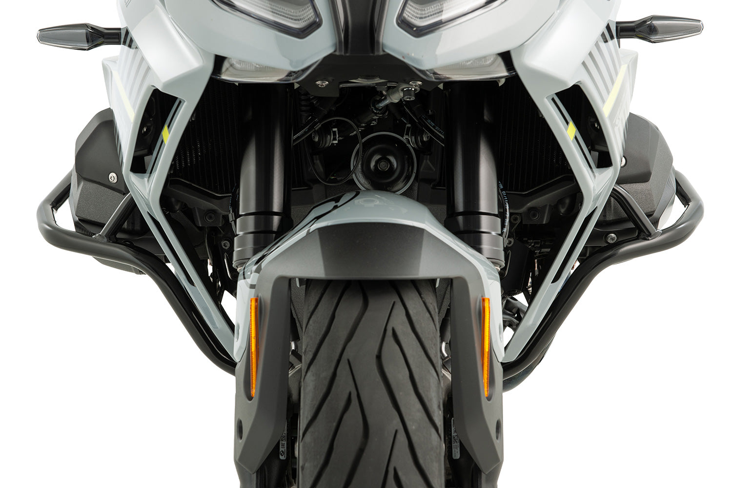 It reliably protects the cylinders and valve covers. The all-round protection concept increases passive safety and enhances riding enjoyment. In the event of a fall or tip-over, the forces are optimally distributed through the bar structure to the solid mounting points, effectively avoiding stress peaks and reducing material strain.