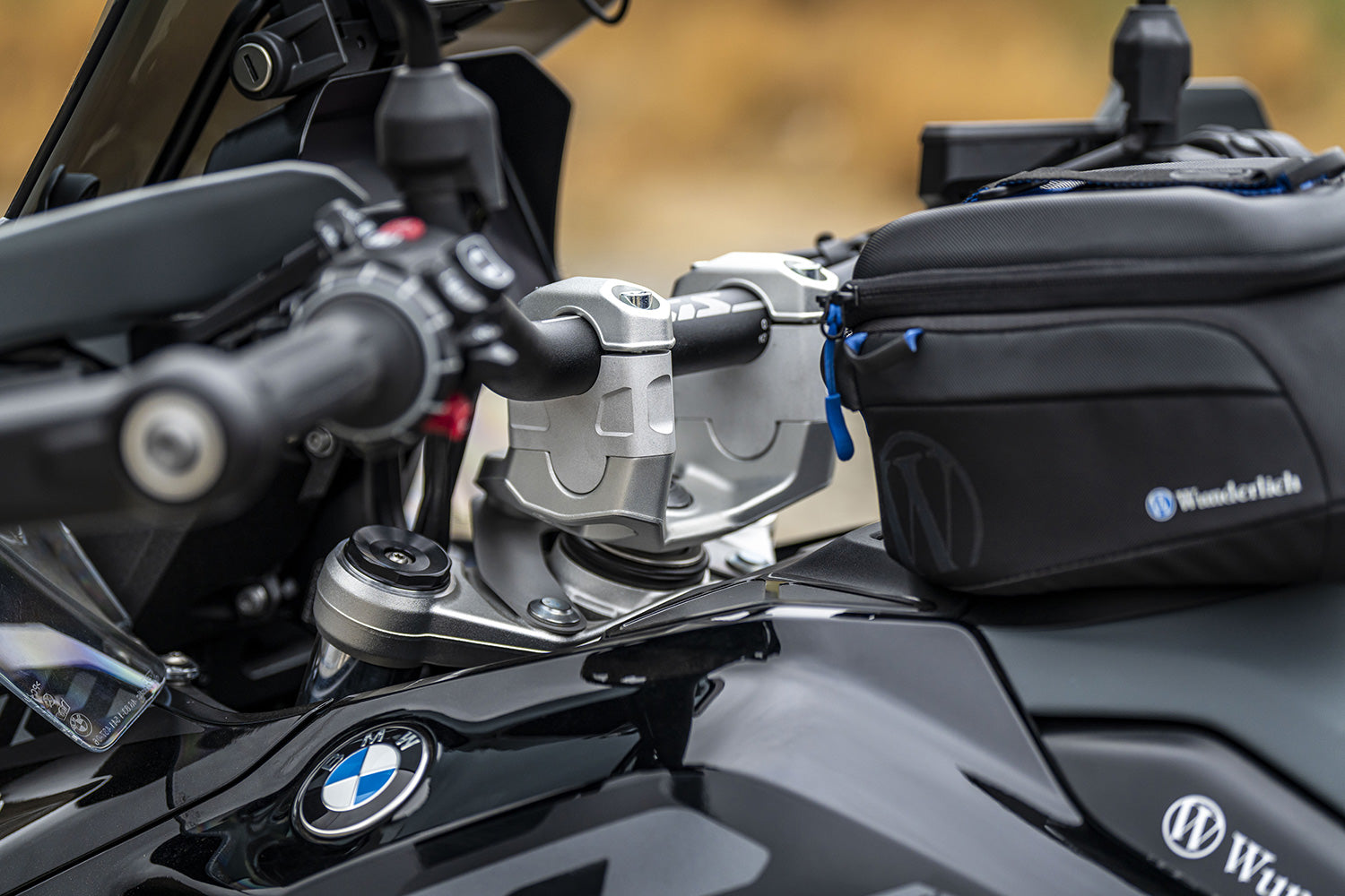 The handlebar riser, specially designed by our developers, raises the handlebar moderately by 40 mm. The ergonomic effects are considerable, as they have a relaxing effect on the entire back muscles and arms and at the same time relieve the spine, pelvis and tailbone. This improves touring suitability and comfort enormously. And relaxed riding also provides a plus in passive safety, just like the better overview of the traffic situation that results from the more upright seating position.
