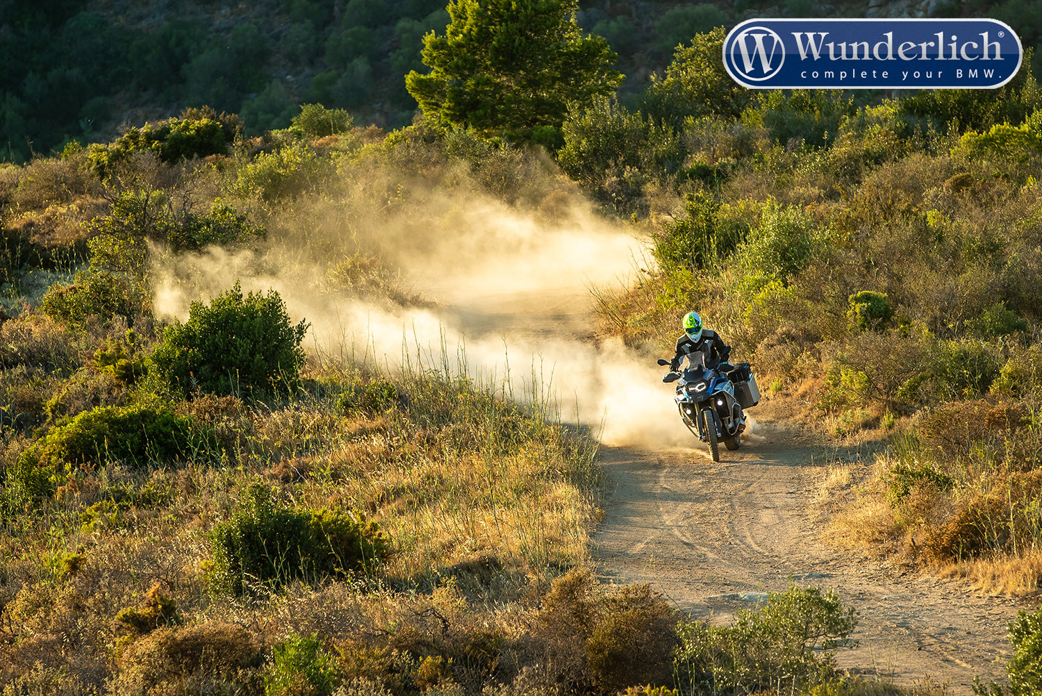 Our foldable grille or screen protects the headlight in all instances and can then be folded upwards when riding on the road or for cleaning purposes.