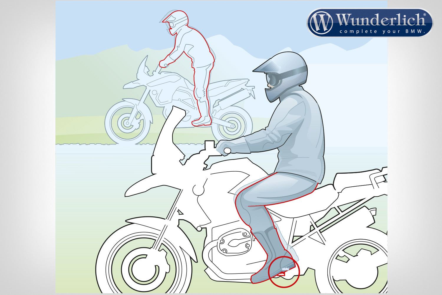 With our sophisticated construction we achieve noticeable, ergonomically effective lowering without considerably extending the base of the rest - and thus the footrest - outwards. A measure that actually adds to your comfort. At the same time, the angle clearance is retained to a high degree. The good accessibility of the gear and break levers and their safe operation makes riding a real pleasure.