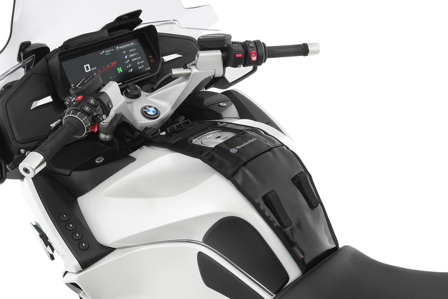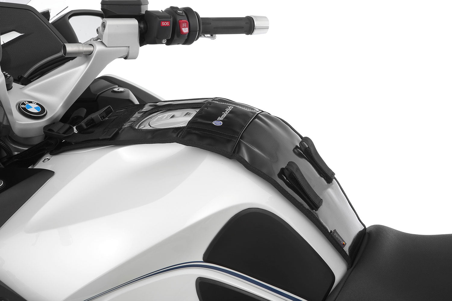 The mounting system is attached to the vehicle with minimal hand pressure and the tank bag can be quickly fastened to it. Push the holding tongue of the tank bag through the holder and close it from the front. An easy and (and therefore brilliant) quick-release system lets you attach and remove the tank bag while wearing gloves or with wet fingers.