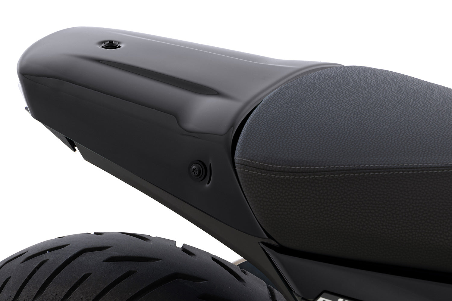 The rear cover is solidly dimensioned and is easily attached using two auxiliary brackets on existing mounting points on the rear frame of the BMW R 12 nineT.