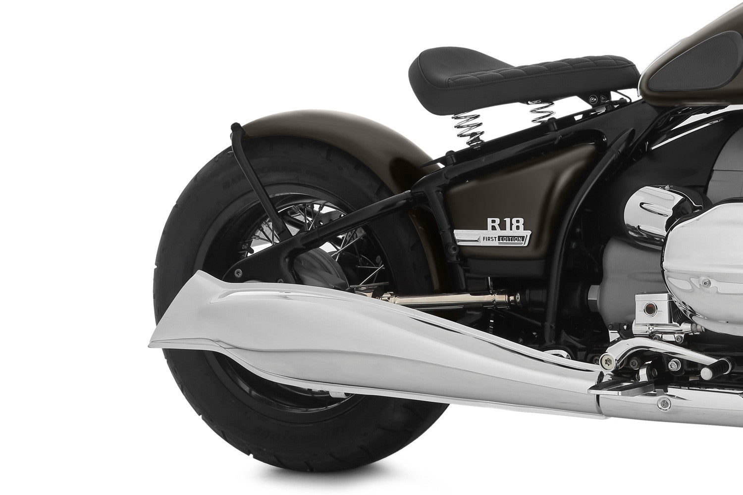 Since the original license plate holder is not required when installing the rear fender, we recommend using our side license plate holder (Art. No. 18500-002). The rear fender comes with a cable set with integrated electronics that is specifically made for the R 18. This connects the license plate lighting as well as the 3-in-1 indicator, tail, and brake light combination to the vehicle via Plug & Play.