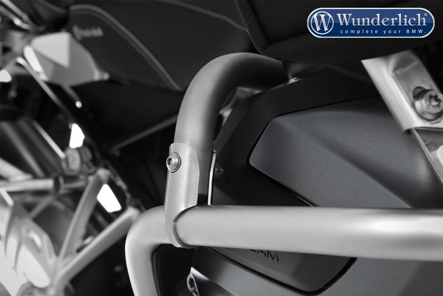 does not fit with HP valve coversThe rear, free end of the original engine protection bar for the Adventure has no additional support against the frame. It thus represents the Achilles heel of the engine protection bar. In the event of a crash or a fall it tends to give way because the forces are not immediately transferred to the frame. This brings the threat of damage to the valve cover.