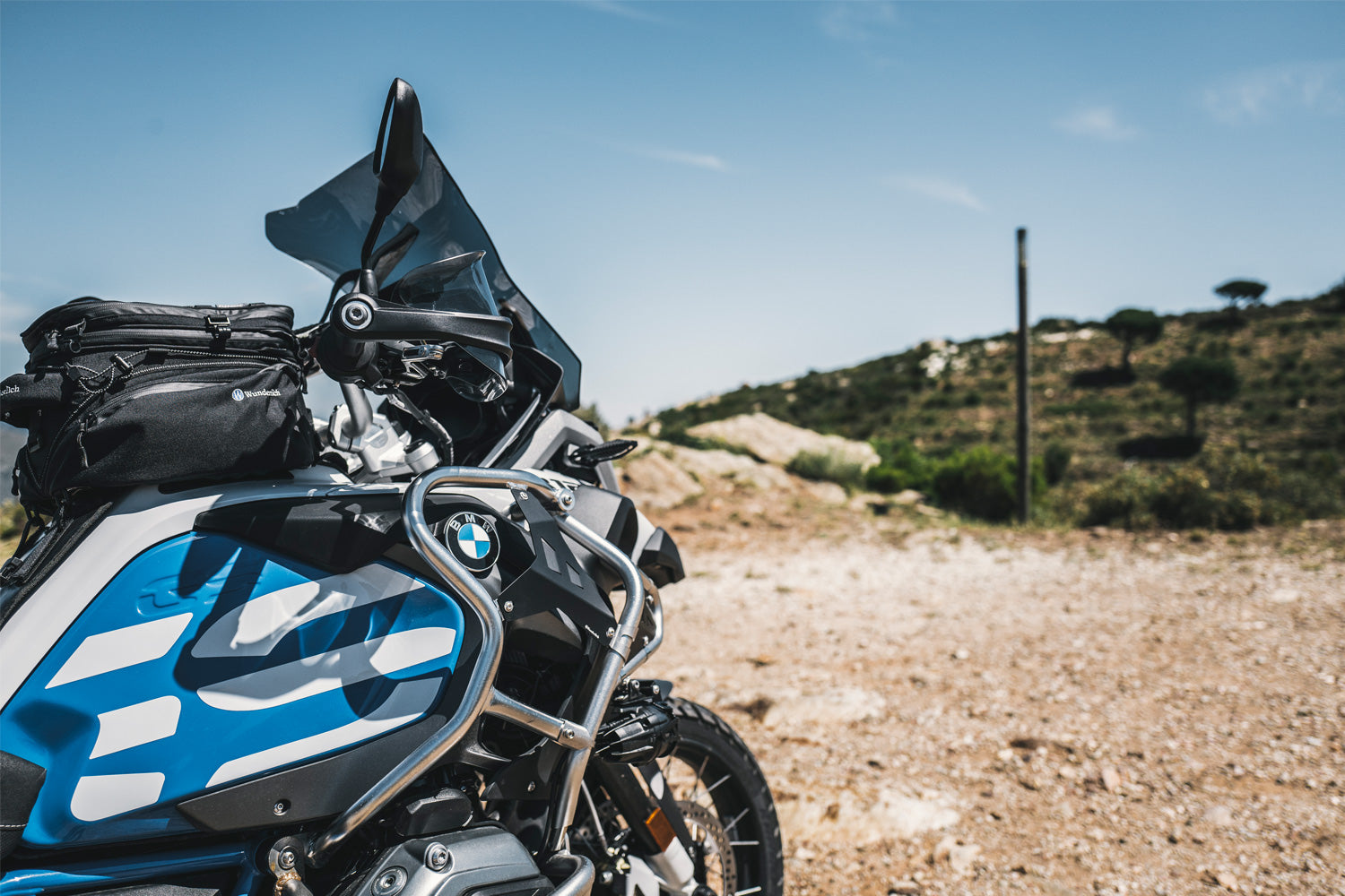 We've protected the protection for the side of the Adventure. This reinforcement bar for the series standard tank crash bar on the R 1200 GS LS Adventure not only reliably protects the tank but the body too. It also gives the Adventure a striking and unique look.