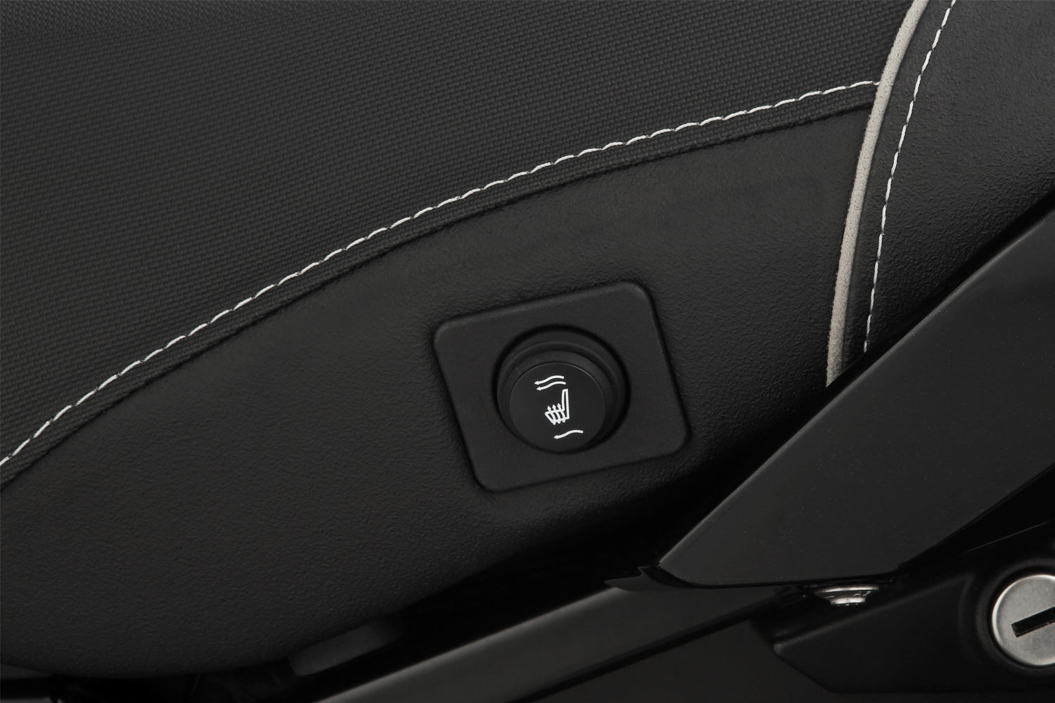 - The two-stage heating control is conveniently and safely operated via a switch on the left side of the seat – keeping the throttle hand on the handlebars