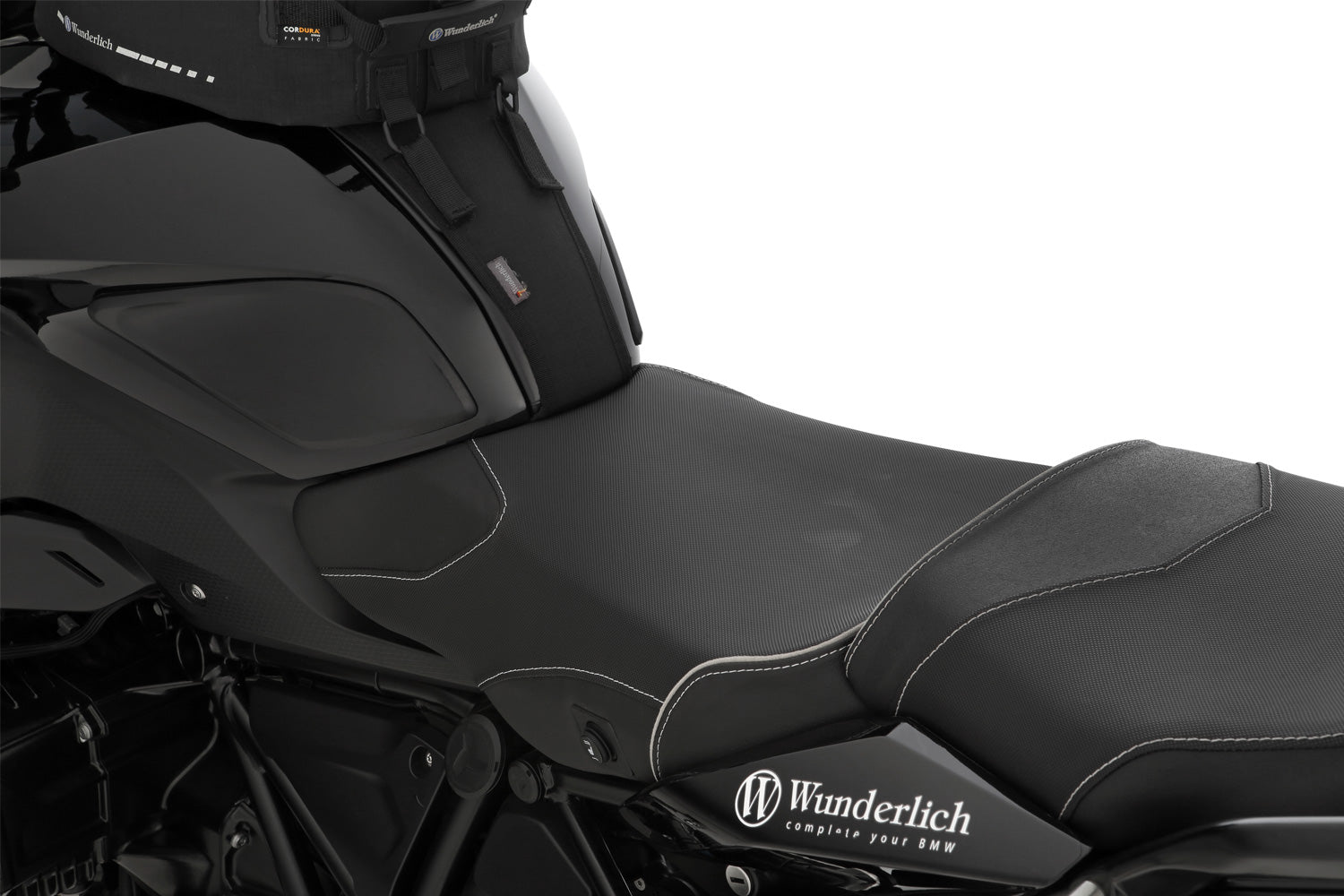 They offer perfect grip and active, secure control during spirited riding, especially when braking: Who hasn't experienced when the pillion suddenly pushes from behind during hard braking, forcing you to brace yourself while also needing to steer in what might be a tricky situation. With Wunderlich's specially developed support contour, these frightening moments during braking are a thing of the past. The innovative, ergonomic 3D contour also ensures that pressure points on the inner thighs when standing at a traffic light are a thing of the past.