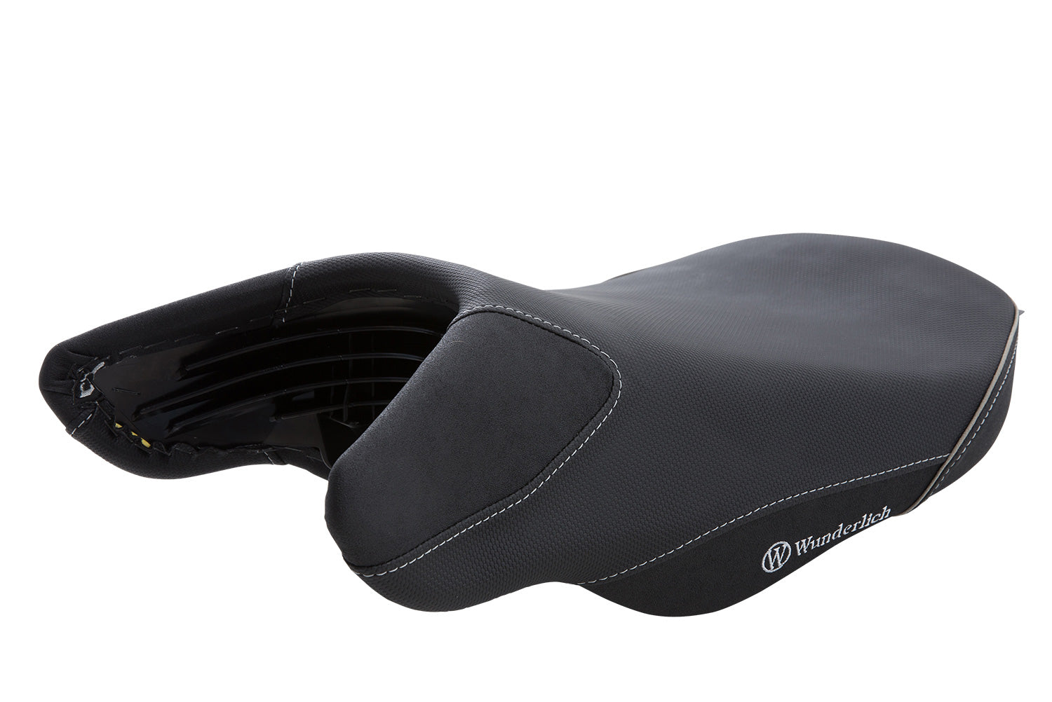 The same applies to all AKTIVKOMFORT seats: The "buckling" of the cushioning is reliably prevented via the sophisticated construction and the sitting pressure is equally distributed over a large area, resulting in noticeably lower specific pressure load to your behind. Comfy! Also typically Wunderlich: The incorporated concave profile for relieving the pressure-sensitive coccyx is another outstanding trademark!