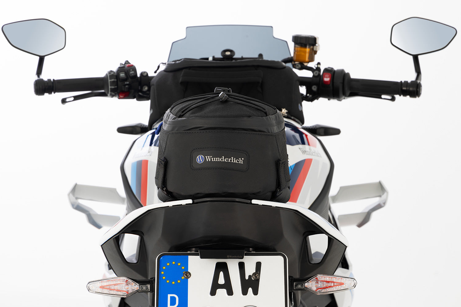 S1000 R 2021 on | S1000 RR 2019 on | M1000 R 2023 on | M1000 RR 2023 on Not with M- sitting padSuper-sporty compact bag - designed for bikes of the same nature. As a sports bag, it easily and uncomplicatedly attaches to the pillion seat cover. It's perfect because the standard storage space is understandably limited in super-sporty bikes from the factory. We have designed it for practical functionality that complements the sporty look of the bike: the design blends in subtly. The materiality of the CORDURA® TrueLock™ fabric used, the blue accents, and the dynamic cut also contribute to this. This tail bag is suitable not only when additional storage space is needed in a hurry – it's always there!