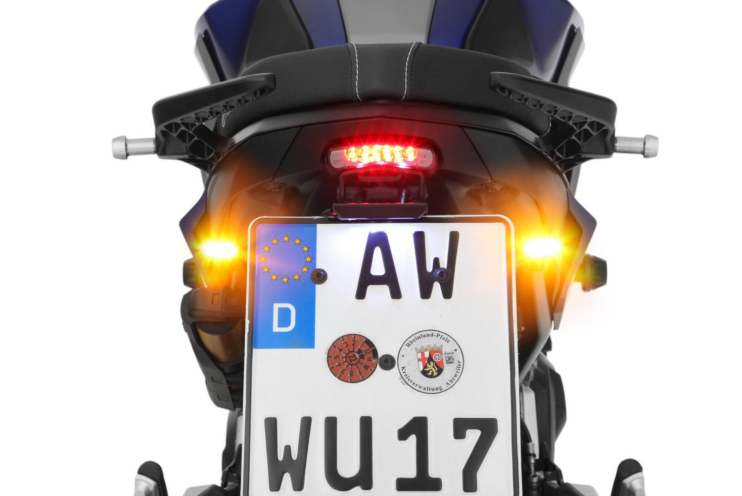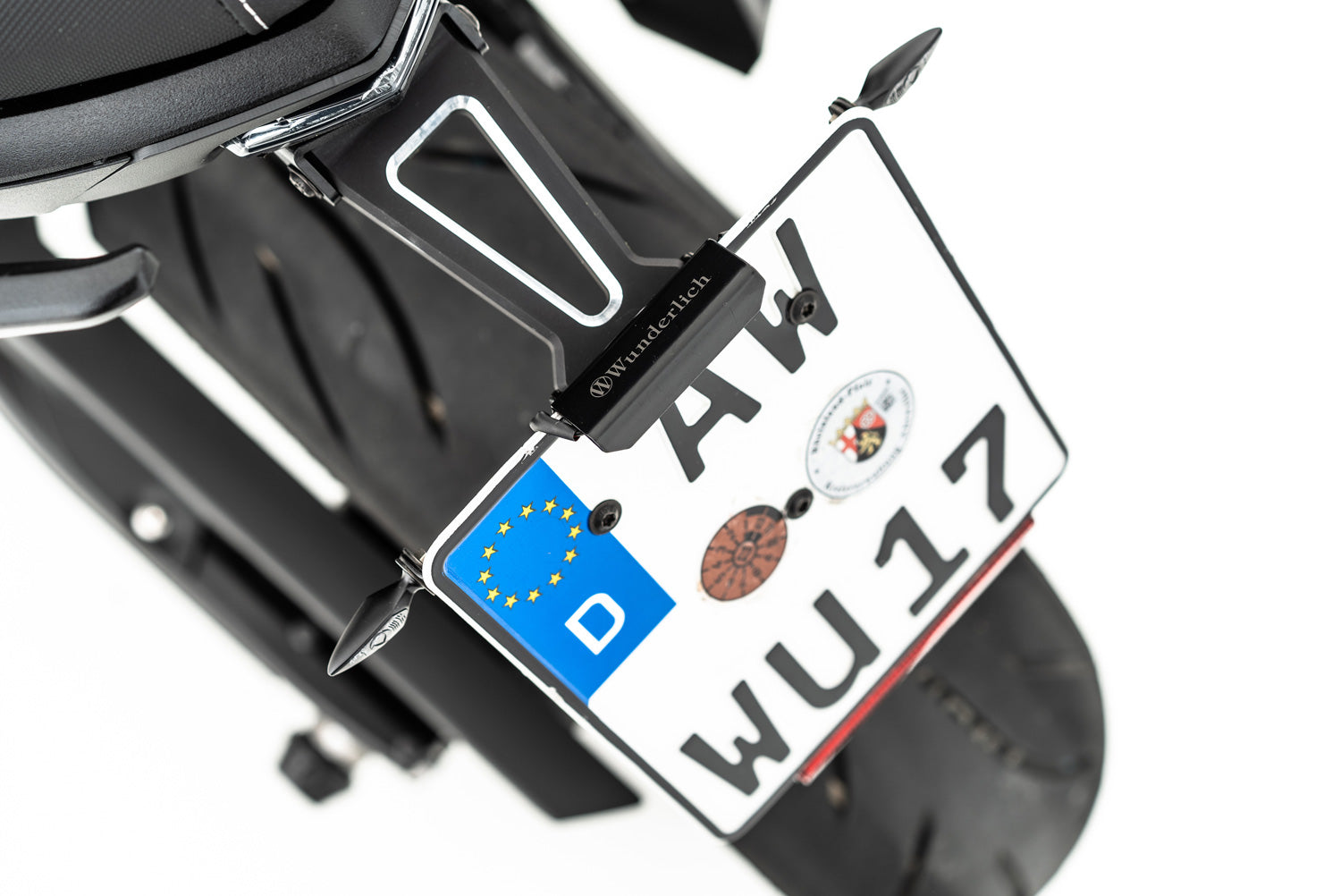 The angle of the licence plate can of course be adjusted and the recesses for the original indicators are ready to use, so you can simply keep using these.