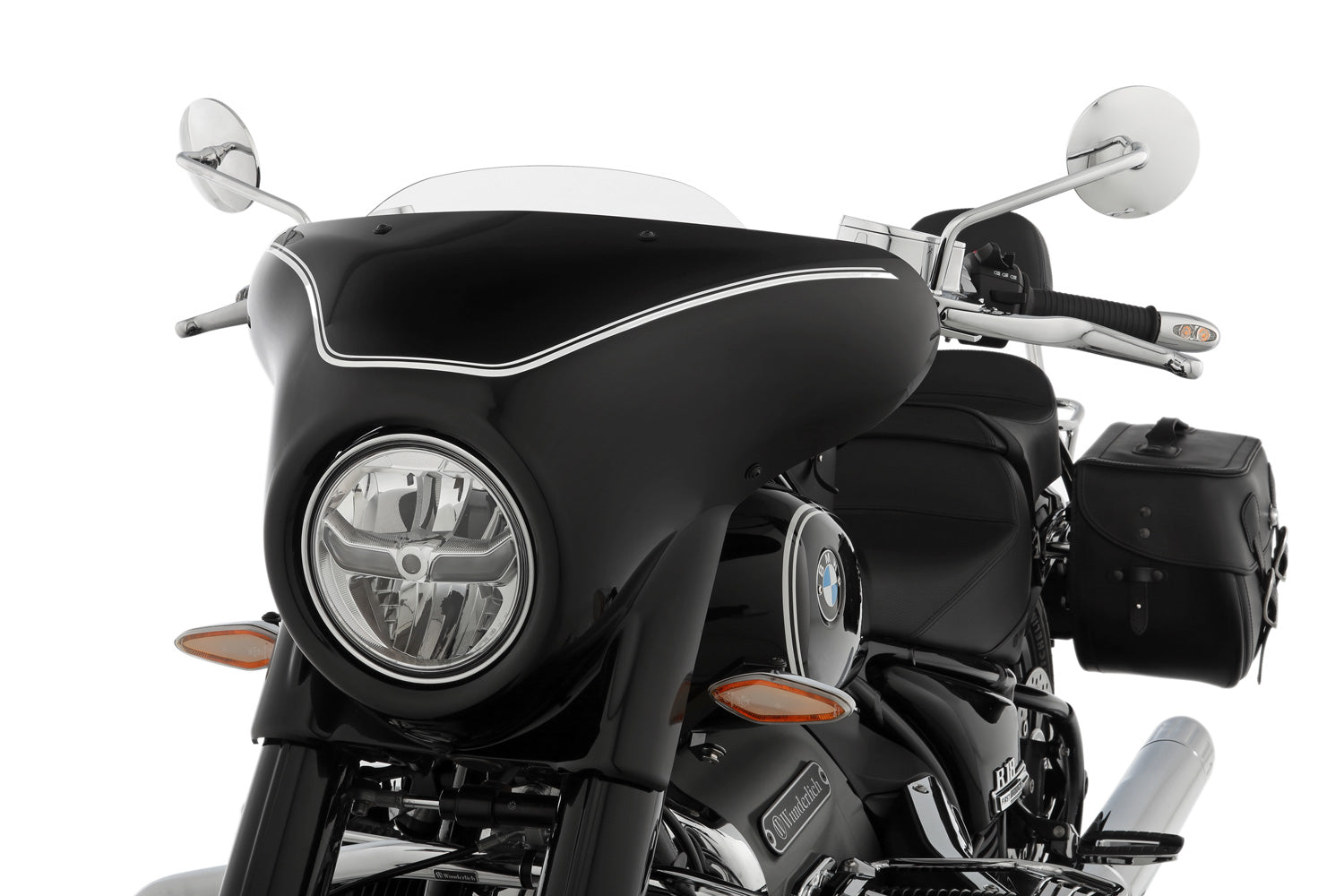 Our SPORT windshield is presented in the best bagger style and is narrowly cut. It is perfectly matched to our already painted R 18 HIGHWAY fairing versions (black #18020-002 or black with white lining #18020-12) and can easily be mounted via plug & play. The HIGHWAY fairing is also available unpainted (#18020-000) for complete personal customising.