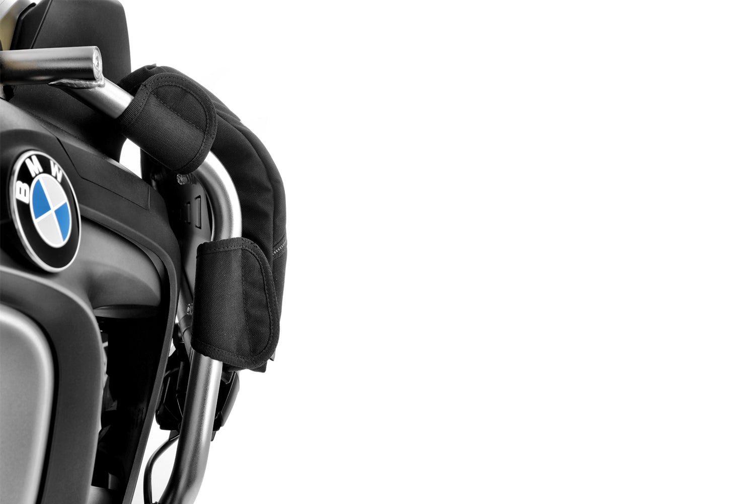 Our water-resistant protection bar bags are ideal for everything you'd like to have ready to hand while on the move: papers, smartphone, sun glasses, keys, multitool, etc. We've designed them so that they fit on the original tank protection bars for the R 1250 GS Adventure. They attach to the protection bar easily and are unshakeable.