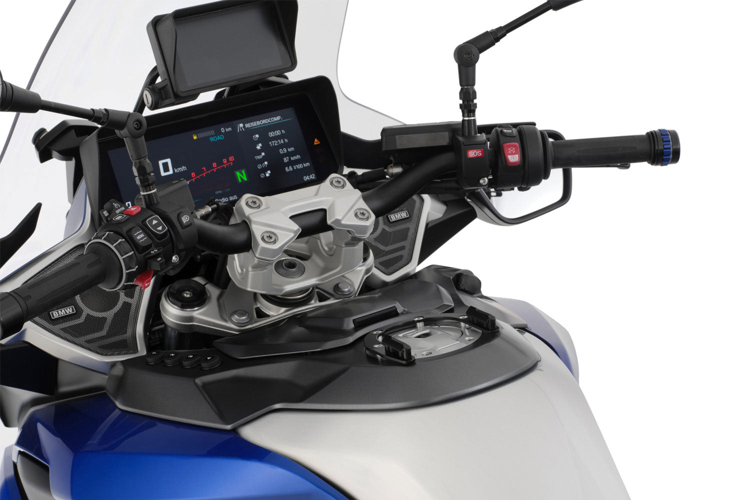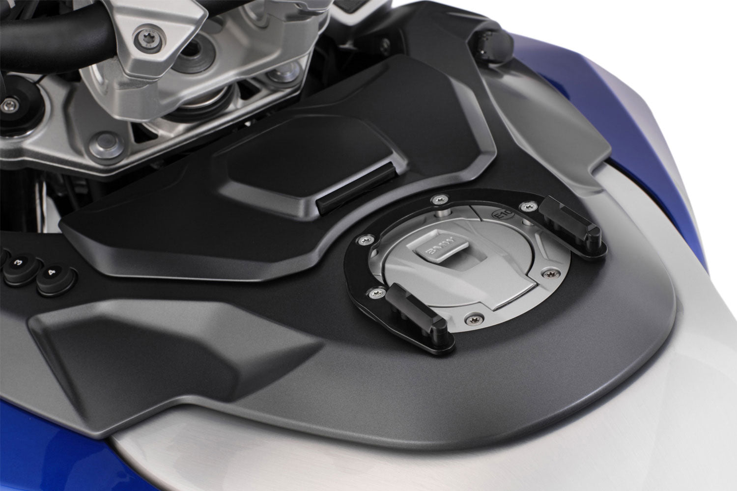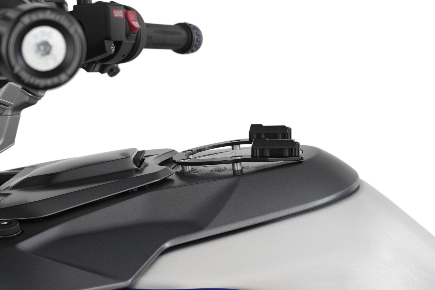 The model-specific tank ring provides the sturdy base for the secure, mechanical locking of the CLICK BAG tank bags. To attach, the CLICK BAG is guided from above into the two slots of the tank ring until it clicks into place automatically. The locking mechanism can be released with a strap on the tank bag – allowing the bag to be removed in an instant, for example when refuelling.