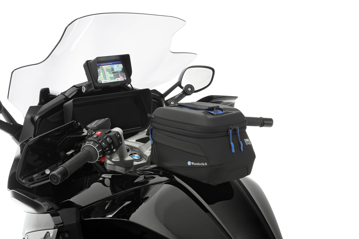 Fits K1600 B only fits with optional forged handlebars | K1600 Grand America only fits with optional forged handlebars | K1600 GT 2017 on | K1600 GTL 2017 onOur CLICK BAG tank bags are extremely clever to use, as they can be fitted and removed in the blink of an eye - with a "click".
