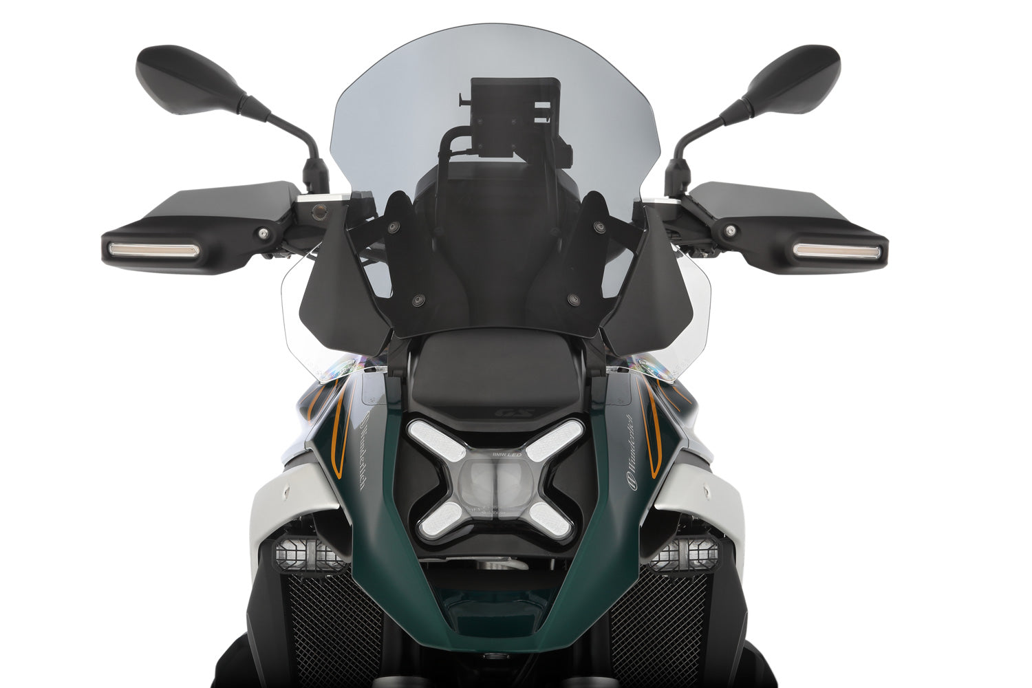 This TOURING-SPORT Windshield is suitable for models with ACC (Adaptive Cruise Control) or without. The front silhouette of the windshield is designed not to cover the ACC radar. The product features of our TOURING-SPORT Windshield are proven to provide effective wind and weather protection, as well as optimal upper body ventilation for your BMW R 1300 GS - a welcome effect, especially in the summer. The aerodynamics relieve wind pressure and reduce unwanted turbulence. The ergonomics ensure comfort on both short and long journeys. Therefore, the stylish TOURING-SPORT Windshield unleashes its full potential on the large GS in every season. It offers maximum protection, pleasant ventilation, and perfect ergonomics for riders of all sizes.