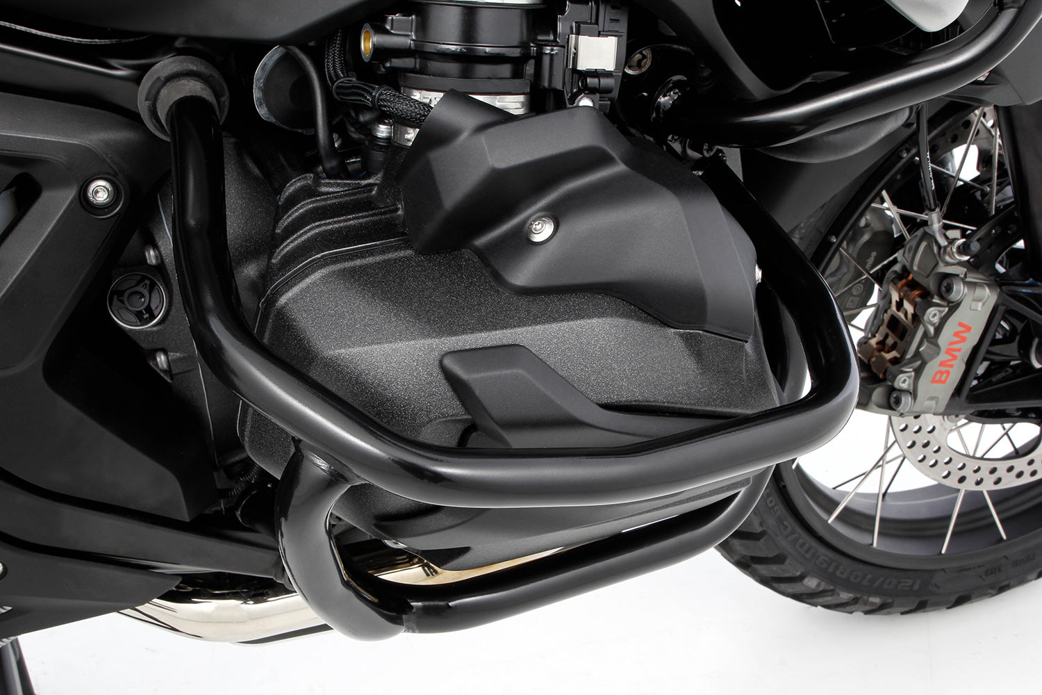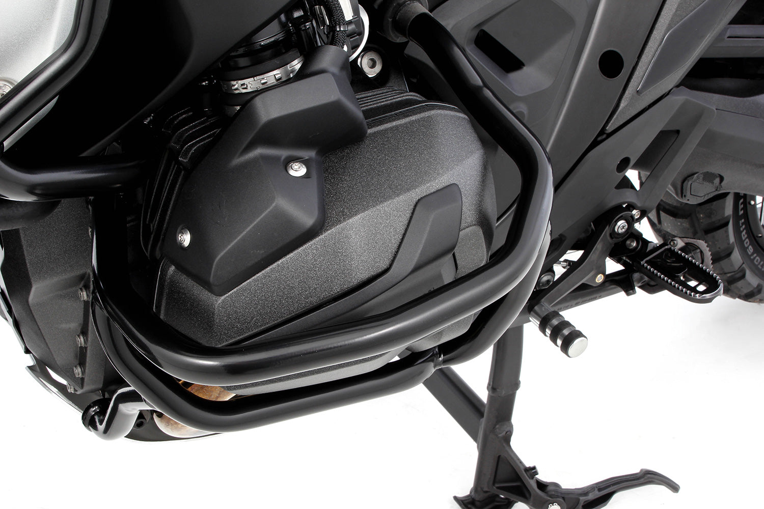 It not only reliably protects the cylinders and valve covers but also both lambda probes. The all-around protection concept enhances passive safety and, therefore, riding pleasure. In the event of a fall or tip-over, the acting forces are optimally distributed across the protection bar structure to the robust mounting points, thereby avoiding force and torque peaks and effectively reducing material stress.