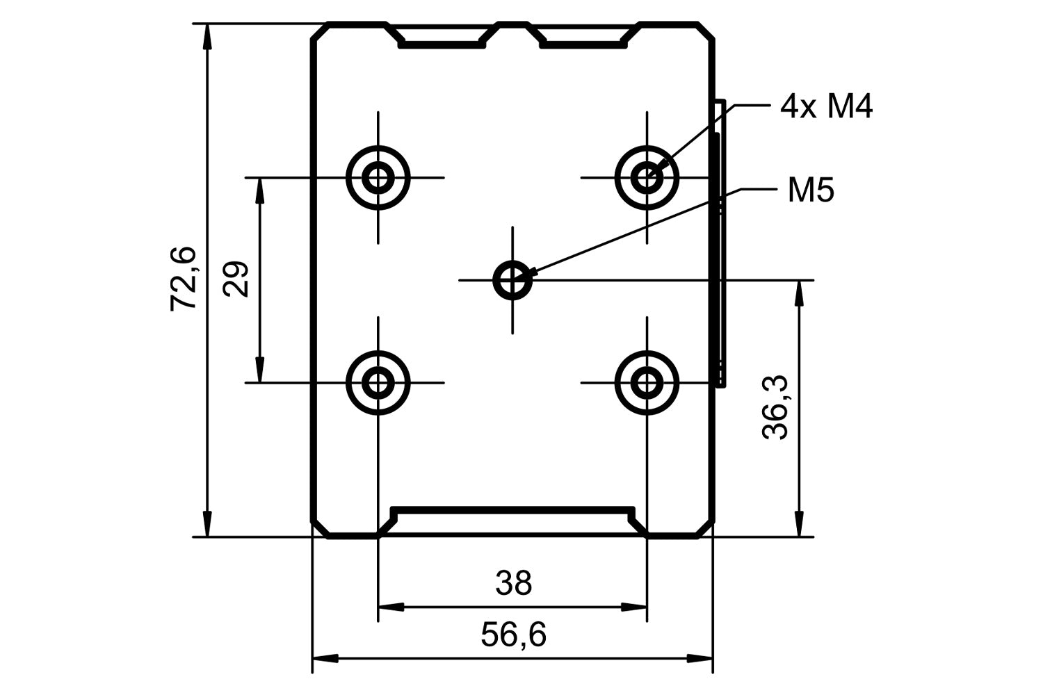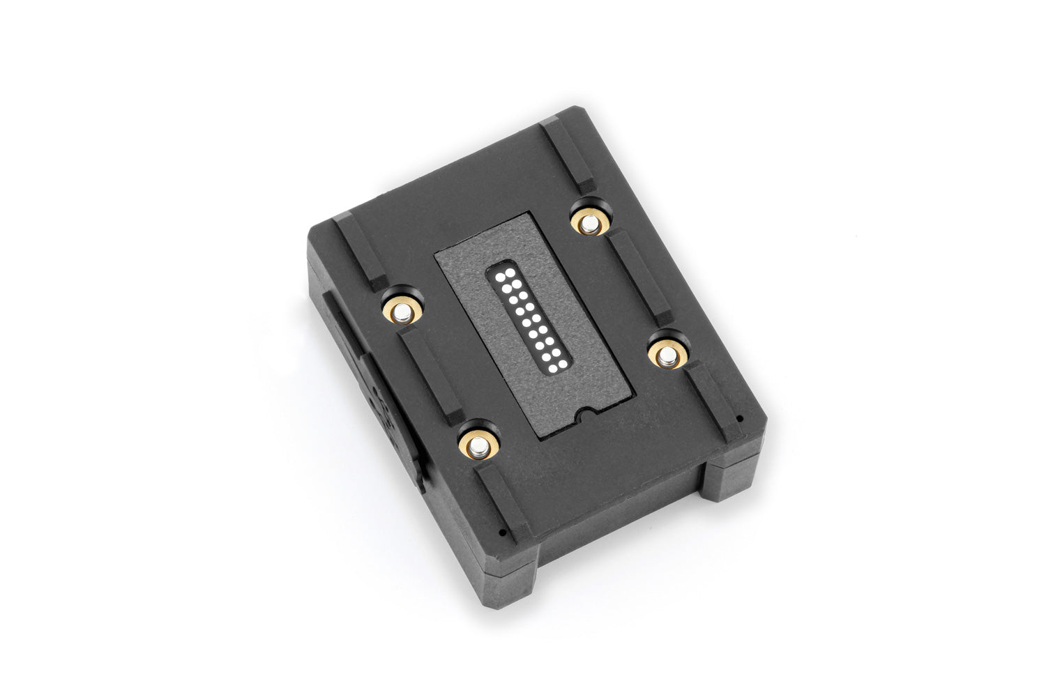 The front of our charging box is equipped with four screws. These are precisely positioned so that they match the standard-compliant bore profile of a range of attachment systems, such as that of the Garmin Zumo XT navigation device. This lets you screw the attachment systems onto the charging box in just a few steps securely and with minimal use of space, and connect the devices to the power supply.