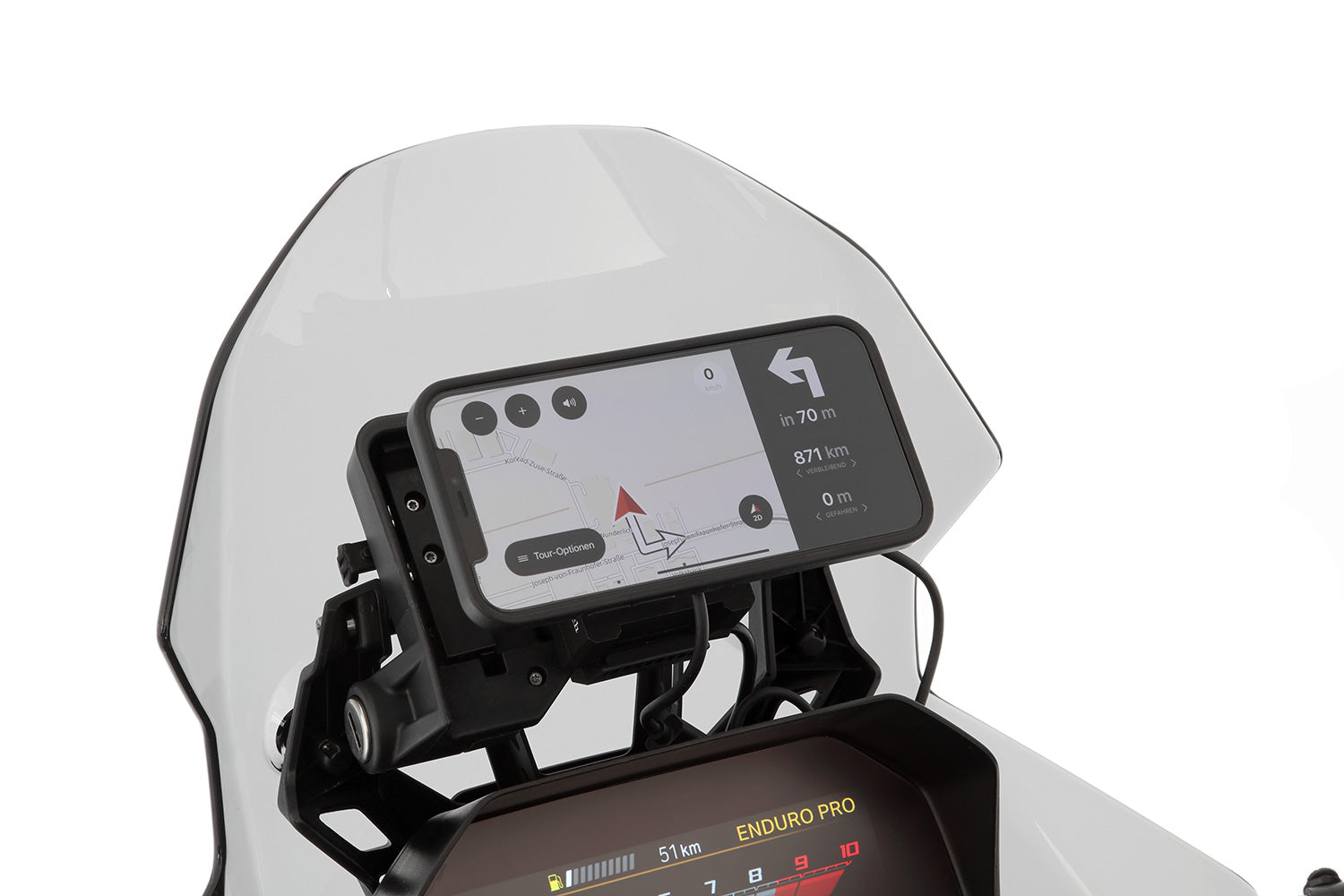 Includes SP-Connect Anti Vibration Module SPC+ with inductive charging function to accommodate the model-specific SP-Connect Smartphone Case SPC+ (45150-xxx). The inductive charging cable (60 cm long, with USB-C plug) can be connected to the charging box or, for example, to an onboard socket for power. The smartphone case is not included. - Preparation for Common Navigation Mounting Systems