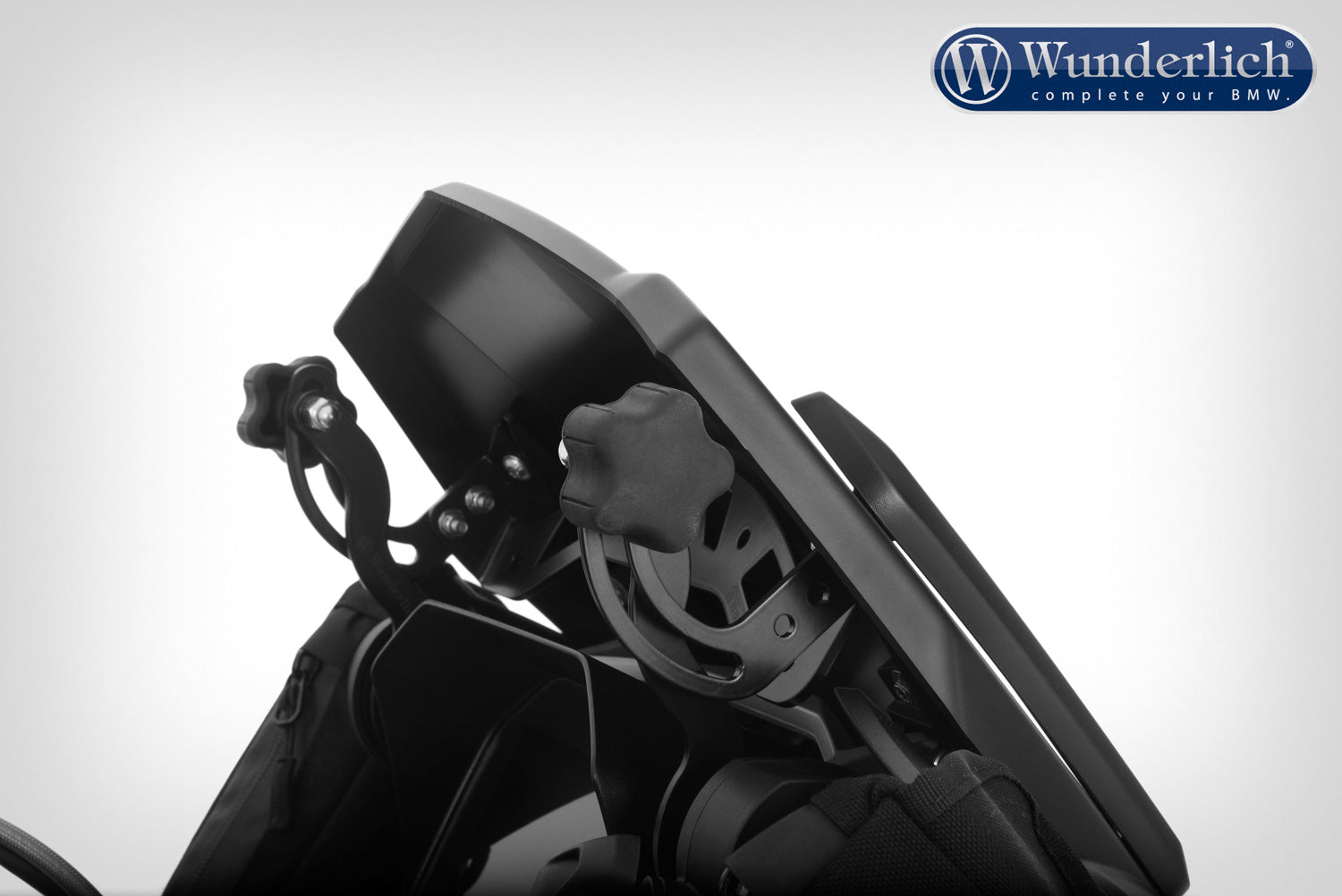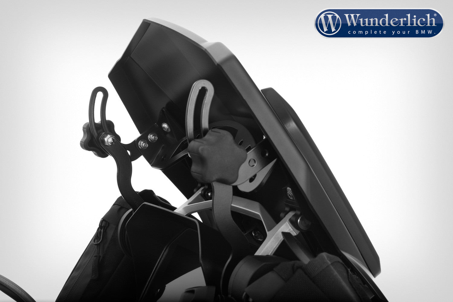 - Stabilisation of the windshield, especially for tall windshields (because of the higher wind pressure) as well as higher stress on the windshield holder when riding over terrain